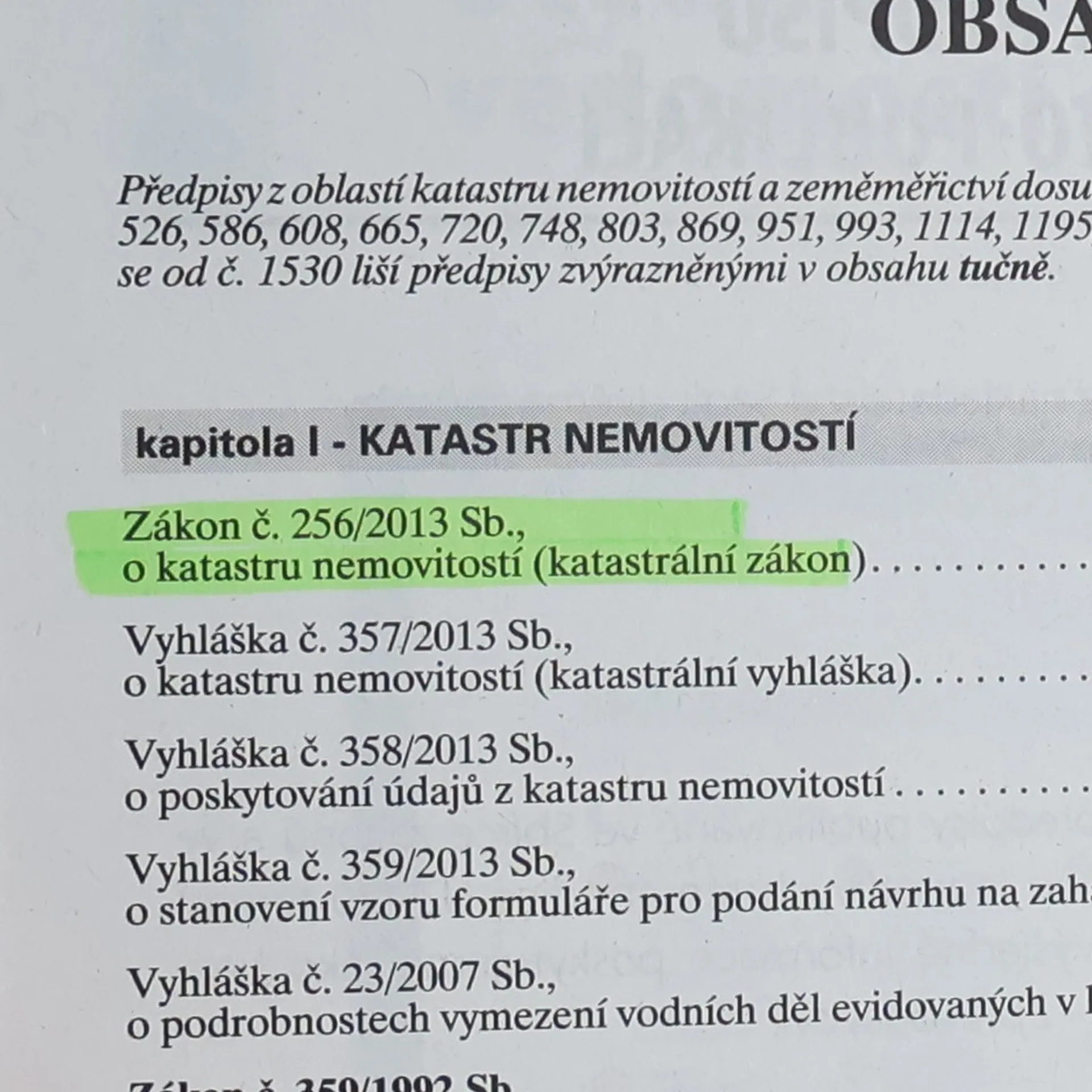 Publikace obsahuje aktuální texty celkem 15 právních předpisů, které jsou rozděleny do tří kapitol – katastr nemovitostí, zeměměřictví a pozemkové úpravy, úřady. Poslední změny předpisů jsou vyznačeny tučným písmem, odkazy na související předpisy jsou plně citovány.