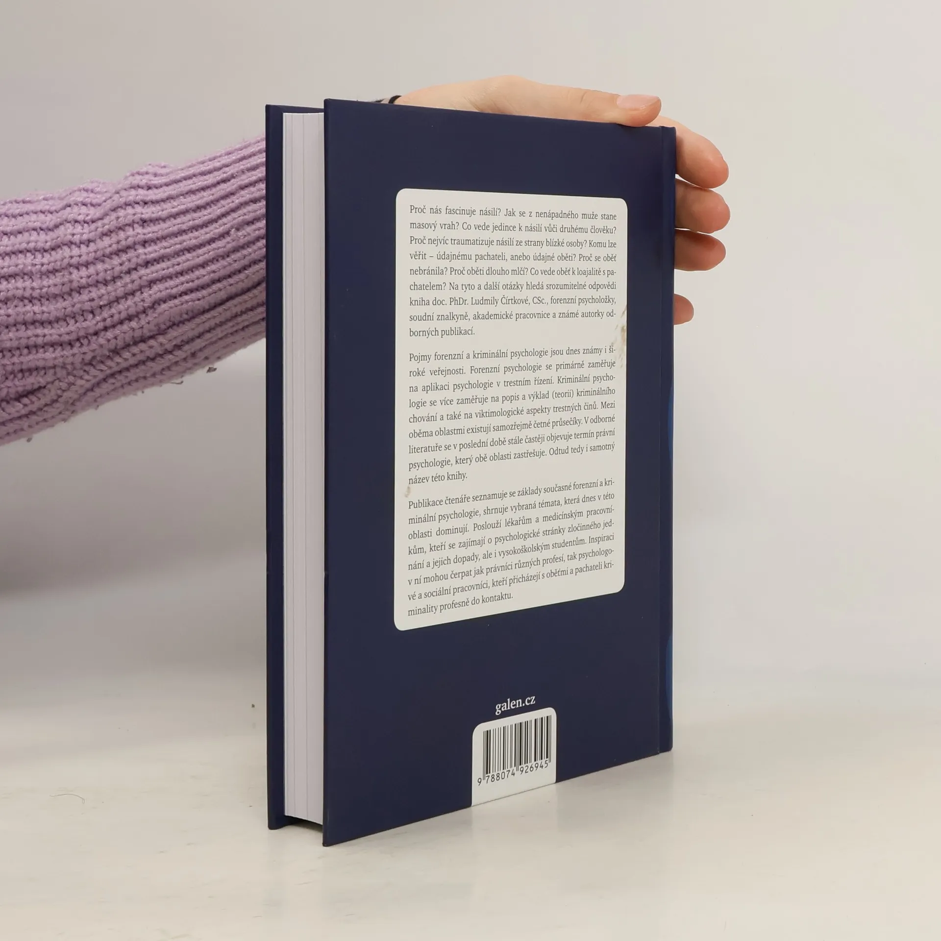 Proč nás fascinuje násilí? Jak se z nenápadného muže stane masový vrah? Co vede jednotlivce k násilí vůči druhému? Proč nejvíce traumatizuje násilí od blízké osoby? Na tyto otázky hledá srozumitelné odpovědi kniha doc. PhDr. Ludmily Čírtkové, forenzní psycholožky a soudní znalkyně. Forenzní psychologie se zaměřuje na aplikaci psychologie v trestním řízení, zatímco kriminální psychologie se věnuje popisu a výkladu kriminálního chování a viktimologickým aspektům trestných činů. Obě oblasti se prolínají a v odborné literatuře se čím dál častěji objevuje termín právní psychologie, který je zahrnuje. Publikace seznamuje čtenáře se základy forenzní a kriminální psychologie a shrnuje klíčová témata v této oblasti. Je určena lékařům a medicínským pracovníkům zajímajícím se o psychologické aspekty zločinného jednání, ale také vysokoškolským studentům. Právníci, psychologové a sociální pracovníci, kteří pracují s oběťmi a pachateli kriminality, mohou v ní nalézt cennou inspiraci.