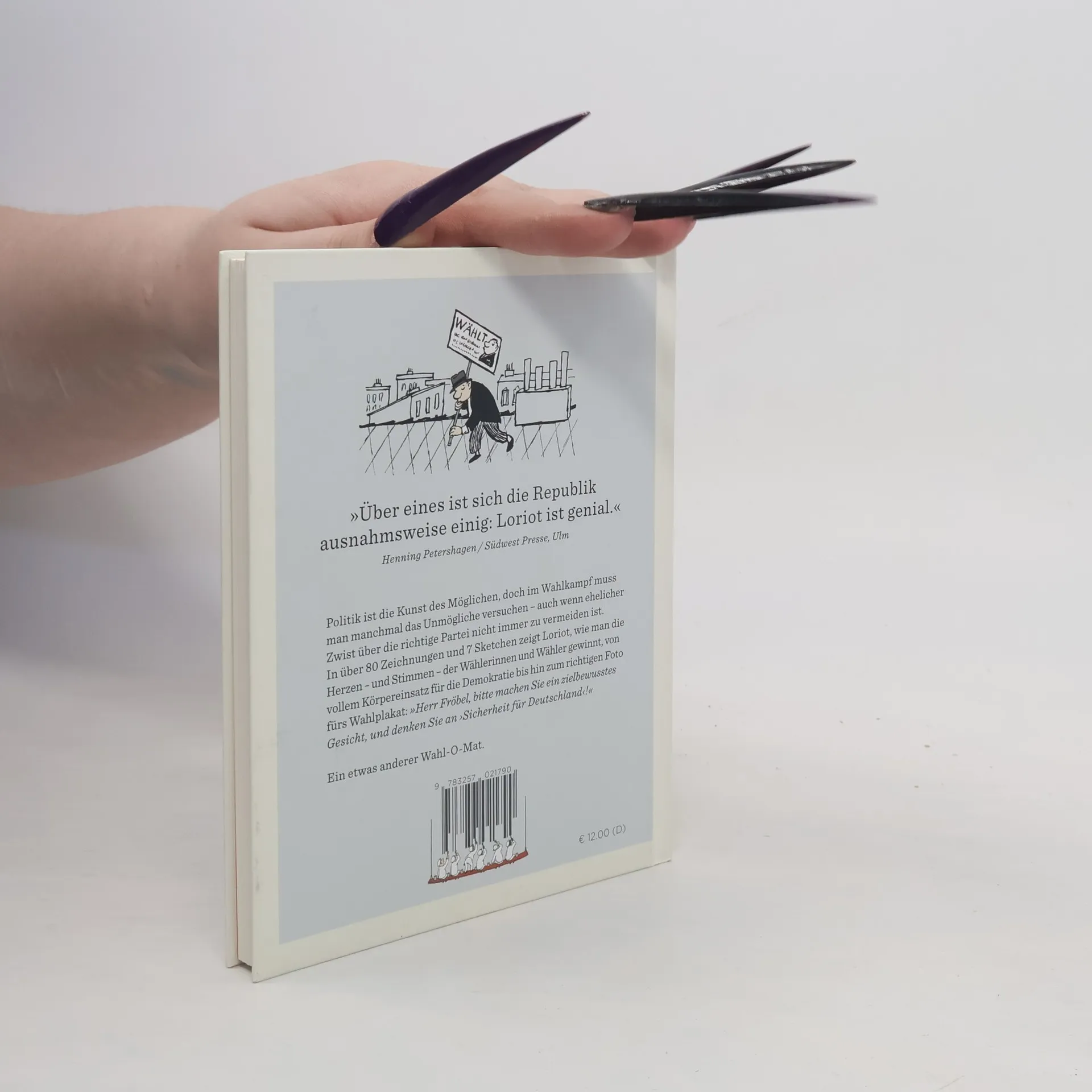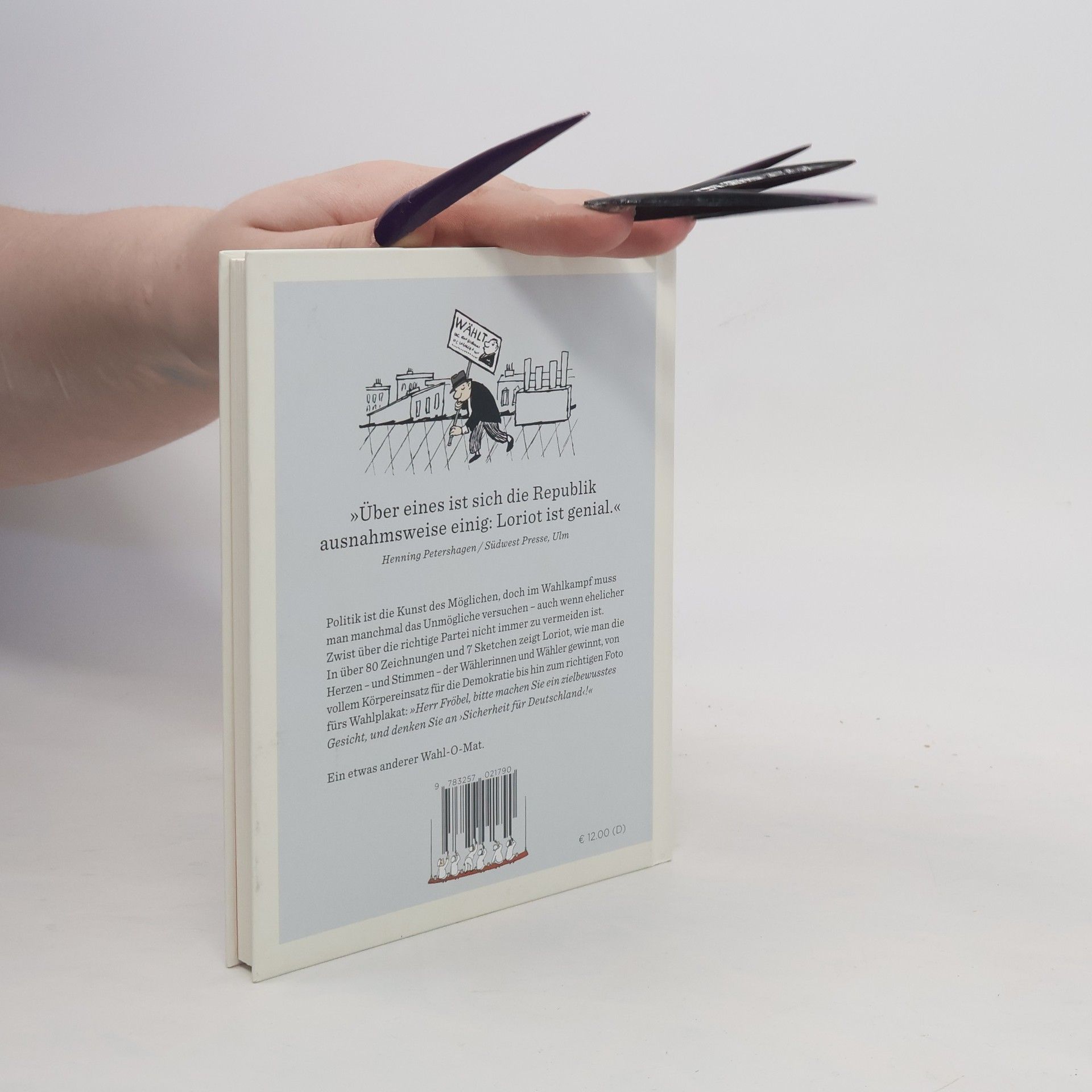 Politik mag die Kunst des Möglichen sein, doch im Wahlkampf muss man manchmal das Unmögliche versuchen – auch wenn ehelicher Zwist über die richtige Partei nicht immer zu vermeiden ist. In über achtzig Zeichnungen und sieben Sketchen zeigt Loriot, wie man die Herzen – und Stimmen – der Wählerinnen und Wähler gewinnt, von vollem Körpereinsatz für die Demokratie bis hin zum richtigen Foto fürs Wahlplakat: »Herr Fröbel, bitte machen Sie ein zielbewusstes Gesicht, und denken Sie an ›Sicherheit für Deutschland‹!«