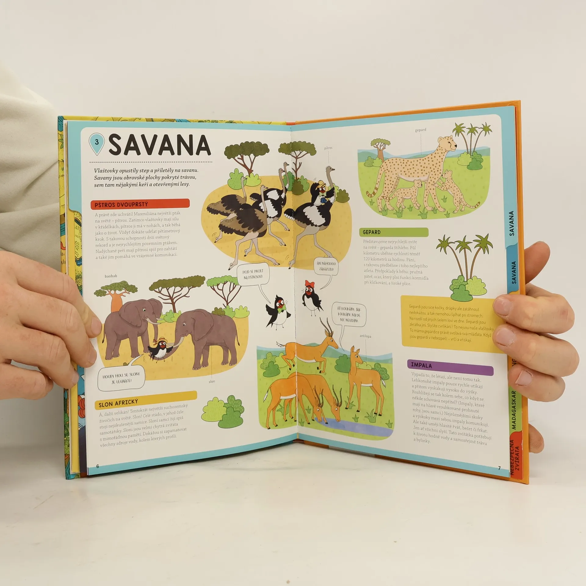 Emilka je mladá vlaštovčí dáma a Maxmilián její vyvolený. Nedávno se vzali a teď letí na svatební cestu. Kam? Jasně že do Afriky! Malinko se ohřát a hlavně poznat své zvířecí kolegy. Chcete se k zamilovanému párečku přidat? Nic vám v tom nebrání. Díky třem rozkládacím mapám uvnitř knihy se v Africe dokonale zorientujete, a pak už jenom můžete číst, poznávat život divokých zvířat a těšit se ze spousty barevných obrázků.