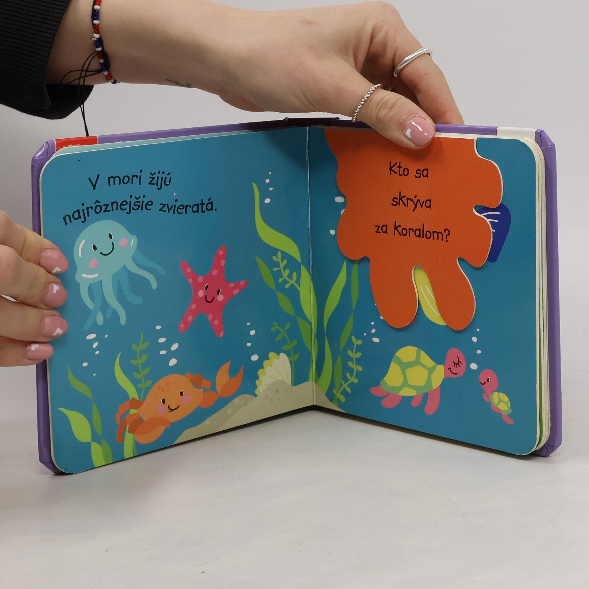 Kto sa skrýva v kroví Kam sa ukryla opička Poznávanie a pomenovávanie zvieratiek Hravé rozširovanie slovnej zásoby S piatimi záložkami s prekvapením Pre deti od 1 roka
