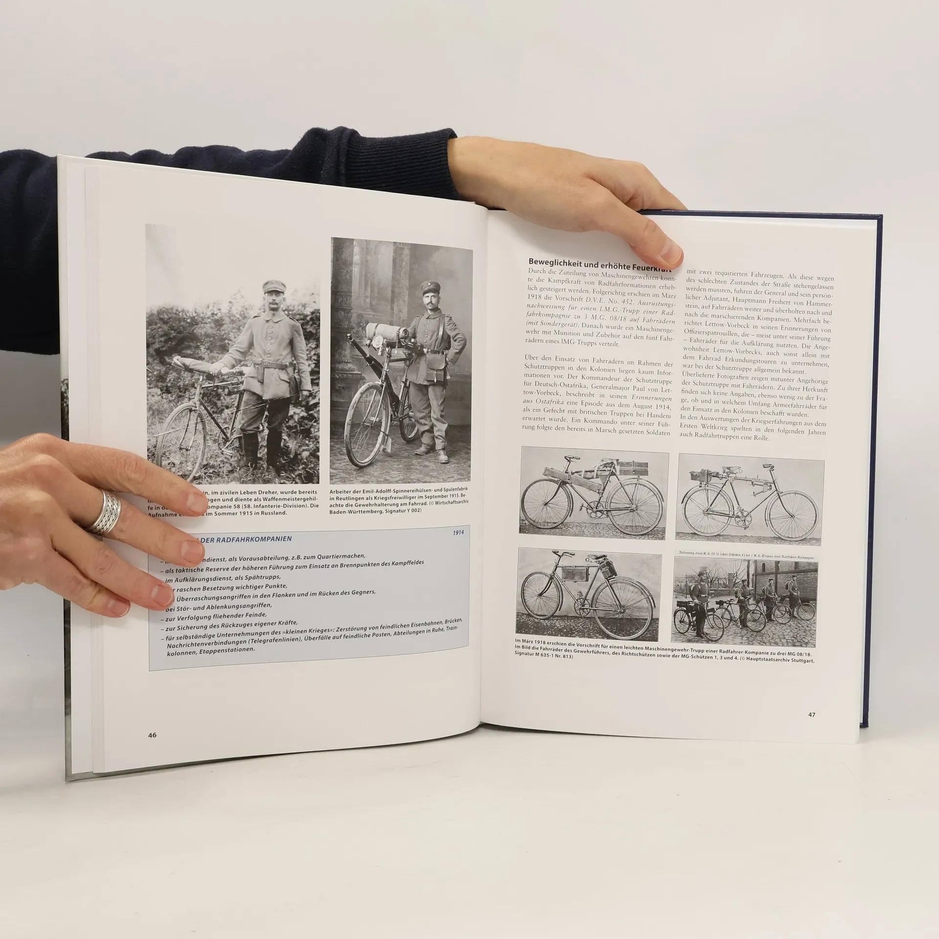Der Einsatz von Fahrrädern beim Militär hatte zwei entscheidende Vorteile: Sie waren wesentlich kostengünstiger als motorisierte Fahrzeuge oder Pferde und erzeugten weitaus weniger Lärm. Anfangs nur als militärische Kurierfahrzeuge eingesetzt, wurden schließlich ganze Radfahrtruppen gegründet und machten so Teile der Infanterie mobil. Barbara Maiwald dokumentiert, wie das Fahrrad die Welt der Militärs in Deutschland eroberte. Dabei schildert sie seine Aufgaben und Einsätze im Kriegsalltag, beschreibt die Fahrradmodelle sowie deren Hersteller und listet auf, welche Bewaffnung zu den diversen Fahrrädern gehörte.