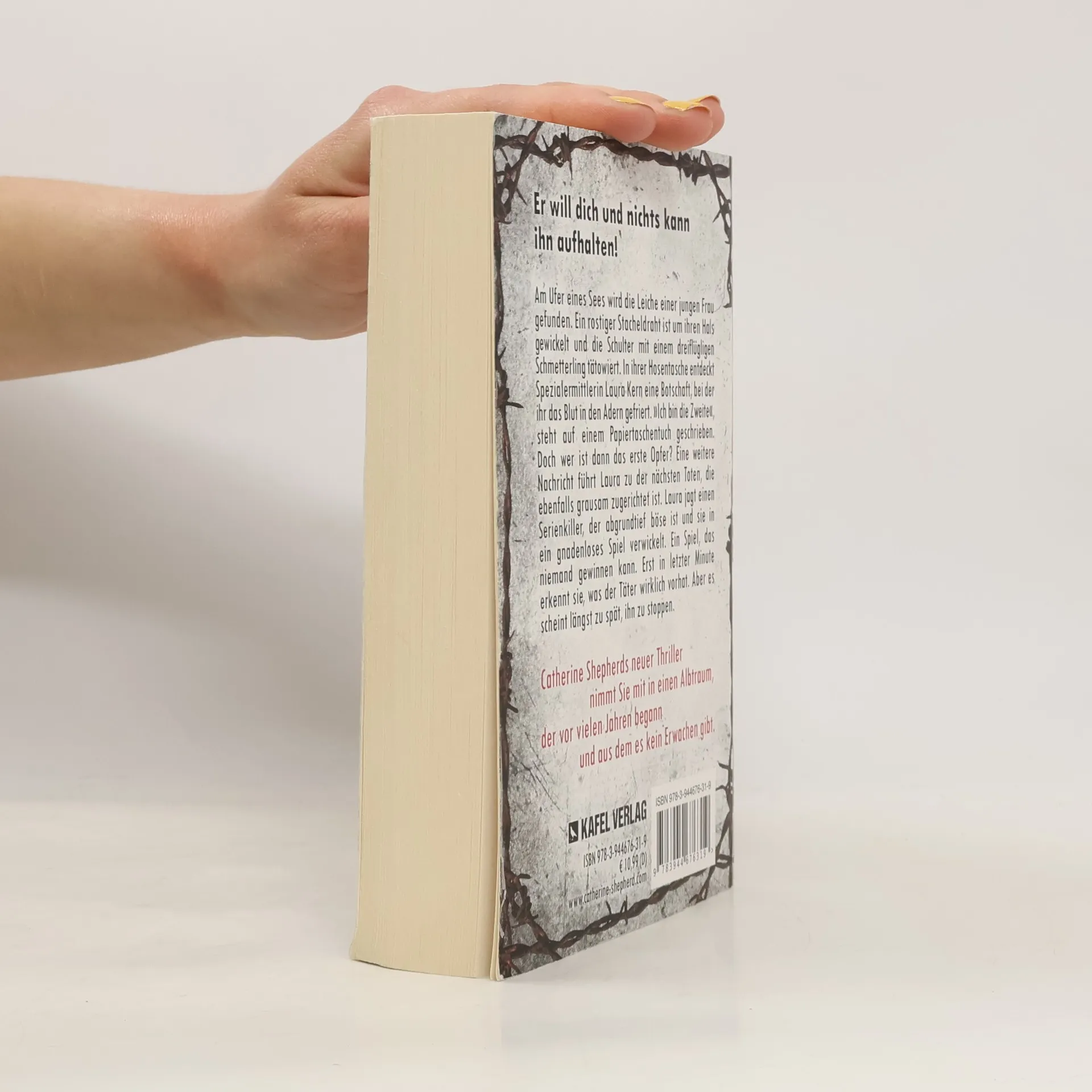 Er will dich und nichts kann ihn aufhalten!Am Ufer eines Sees wird die Leiche einer jungen Frau gefunden. Ein rostiger Stacheldraht ist um ihren Hals gewickelt und die Schulter mit einem dreiflügligen Schmetterling tätowiert. In ihrer Hosentasche entdeckt Spezialermittlerin Laura Kern eine Botschaft, bei der ihr das Blut in den Adern gefriert. »Ich bin die Zweite«, steht auf einem Papiertaschentuch geschrieben. Doch wer ist dann das erste Opfer? Eine weitere Nachricht führt Laura zu der nächsten Toten, die ebenfalls grausam zugerichtet ist. Laura jagt einen Serienkiller, der abgrundtief böse ist und sie in ein gnadenloses Spiel verwickelt. Ein Spiel, das niemand gewinnen kann. Erst in letzter Minute erkennt sie, was der Täter wirklich vorhat. Aber es scheint längst zu spät, ihn zu stoppen.