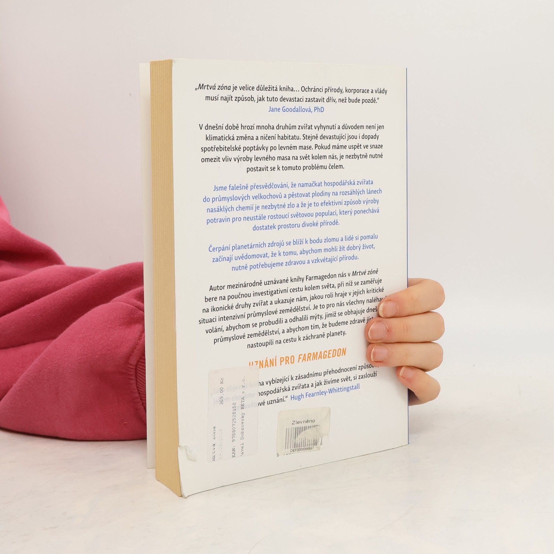 Další burcující kniha od autora Farmagedonu. Odhalte škodlivé mýty dnešního průmyslového zemědělství a vydejte se na cestu k záchraně planety. „Mrtvá zóna je velice důležitá kniha… Ochránci přírody, korporace a vlády musí najít způsob, jak tuto devastaci zastavit dřív, než bude pozdě.“ Jane Goodallová, PhD, světoznámá anglická primatoložka, držitelka Řádu britského impéria DBE a Posel míru OSN Čerpání planetárních zdrojů se blíží k bodu zlomu, mnoha druhům zvířat dnes hrozí vyhynutí a důvodem není jen klimatická změna a ničení habitatu. Stejně devastující jsou i dopady spotřebitelské poptávky po levném mase. Pokud máme uspět ve snaze omezit vliv výroby levného masa na svět kolem nás, je nezbytně nutné postavit se k tomuto problému čelem. Autor mezinárodně uznávané knihy Farmagedon nás v Mrtvé zóně bere na poučnou investigativní cestu kolem světa, při níž se zaměřuje na ikonické druhy zvířat a ukazuje nám, jakou roli hraje v jejich kritické situaci intenzivní průmyslové zemědělství. Je to pro nás pro všechny naléhavé volání, abychom se probudili a odhalili mýty, jimiž se obhajuje dnešní průmyslové zemědělství, a abychom tím, že budeme zdravě jíst, nastoupili na cestu k záchraně planety.