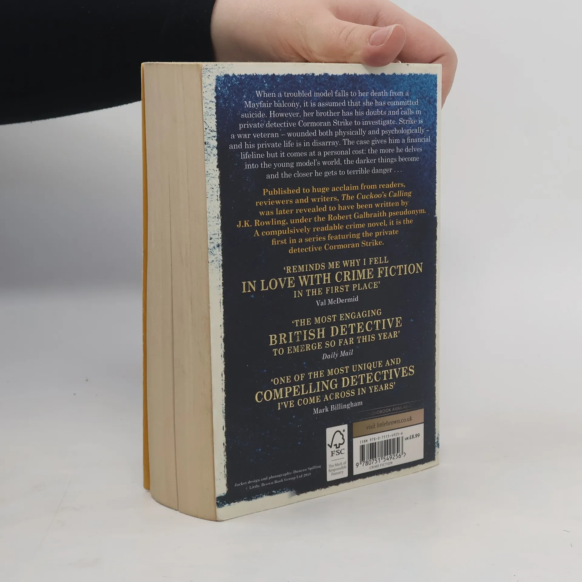 'The Cuckoo's Calling reminds me why I fell in love with crime fiction in the first place' VAL MCDERMID ----- Now a major BBC drama: The Strike series When a troubled model falls to her death from a snow-covered Mayfair balcony, it is assumed that she has committed suicide. However, her brother has his doubts, and calls in private investigator Cormoran Strike to look into the case. Strike is a war veteran - wounded both physically and psychologically - and his life is in disarray. The case gives him a financial lifeline, but it comes at a personal cost: the more he delves into the young model's complex world, the darker things get - and the closer he gets to terrible danger . . . A gripping, elegant mystery steeped in the atmosphere of London - from the hushed streets of Mayfair to the backstreet pubs of the East End to the bustle of Soho - The Cuckoo's Calling is a remarkable book. Introducing Cormoran Strike, this is the acclaimed first crime novel by J.K. Rowling, writing under the pseudonym Robert Galbraith. *** The latest book in the thrilling Strike series, LETHAL WHITE is out now! *** ----- PRAISE FOR THE STRIKE SERIES: 'One of the most unique and compelling detectives I've come across in years' MARK BILLINGHAM 'The work of a master storyteller' DAILY TELEGRAPH 'Unputdownable. . . Irresistible' SUNDAY TIMES 'Will keep you up all night' OBSERVER 'A thoroughly enjoyable classic' PETER JAMES, SUNDAY EXPRESS