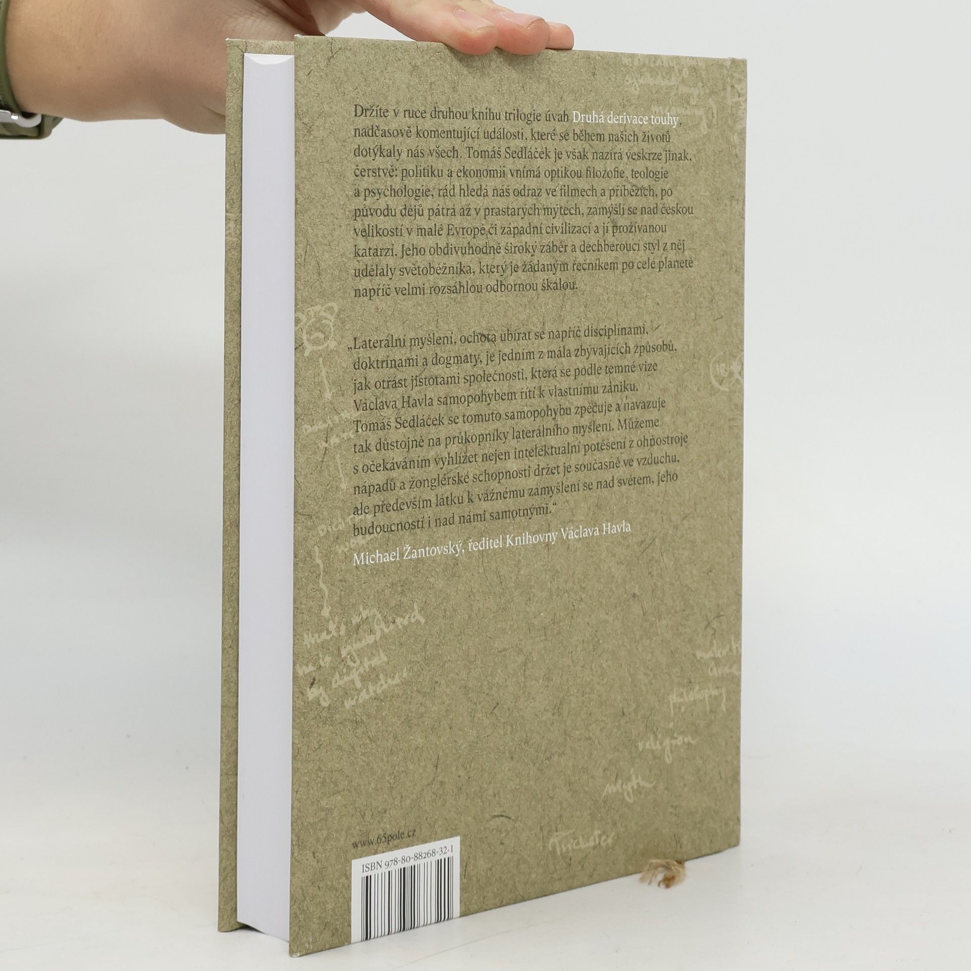 Druhý díl trilogie úvah ekonoma Tomáše Sedláčka nad tématy a událostmi posledních let. Kniha nadčasově komentuje události, které se během našich životů dotýkaly nás všech. Tomáš Sedláček je však nazírá veskrze jinak, čerstvě: politiku a ekonomii vnímá optikou filozofie, teologie a psychologie, rád hledá náš odraz ve filmech a příbězích, po původu dějů pátrá až v prastarých mýtech, zamýšlí se nad českou velikostí v malé Evropě či západní civilizací a jí prožívanou katarzí. Jeho obdivuhodně široký záběr a dechberoucí styl z něj udělaly světoběžníka, který je žádaným řečníkem po celé planetě napříč velmi rozsáhlou odbornou škálou. První díl trilogie byl nominován na cenu Magnesia Litera za publicistiku. „Laterální myšlení, ochota ubírat se napříč disciplínami, doktrínami a dogmaty, je jedním z mála zbývajících způsobů, jak otřást jistotami společnosti, která se podle temné vize Václava Havla samopohybem řítí k vlastnímu zániku. Tomáš Sedláček se tomuto samopohybu zpěčuje a navazuje tak důstojně na průkopníky laterálního myšlení. Můžeme s očekáváním vyhlížet nejen intelektuální potěšení z ohňostroje nápadů a žonglérské schopnosti držet je současně ve vzduchu, ale především látku k vážnému zamyšlení se nad světem, jeho budoucností i nad námi samotnými.“ Michael Žantovský, ředitel Knihovna Václava Havla