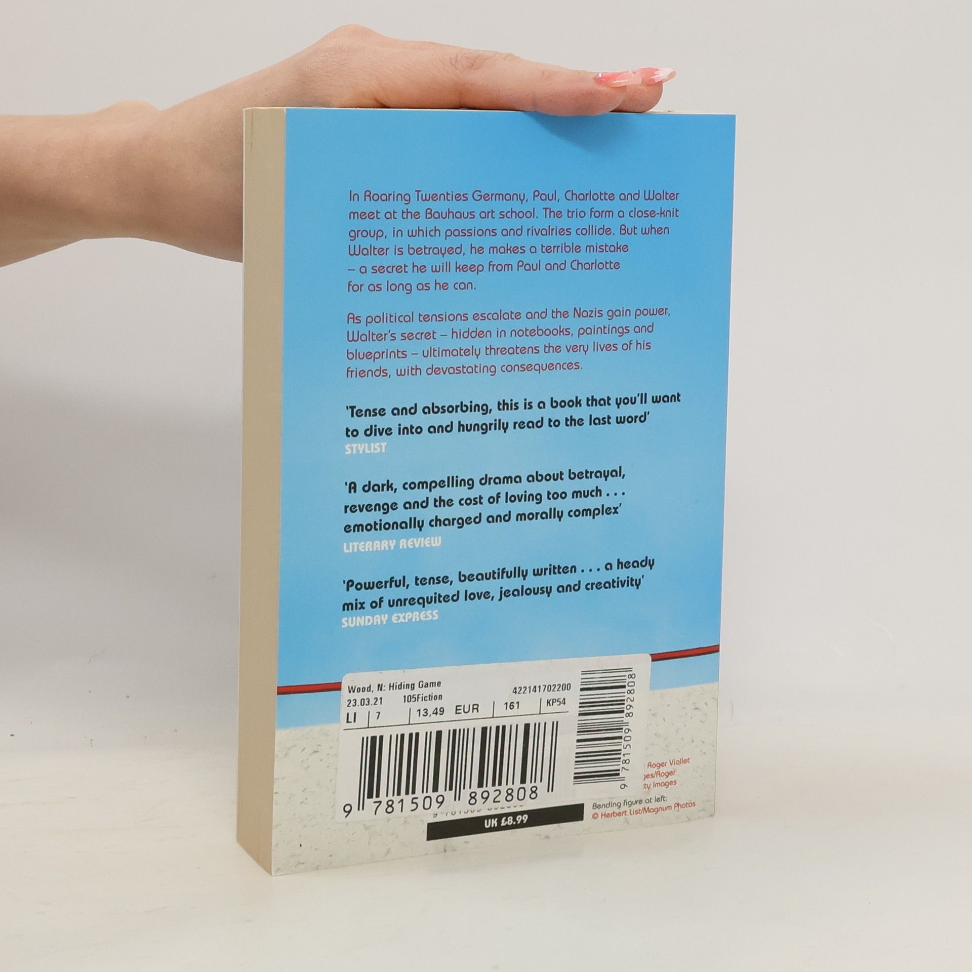In 1922, Paul Beckermann arrives at the Bauhaus art school and is immediately seduced by both the charismatic teaching and his fellow students. Eccentric and alluring, the more time Paul spends with his new friends the closer they become, and the deeper he falls in love with the mesmerising Charlotte. But Paul is not the only one vying for her affections, and soon an insidious rivalry takes root.As political tensions escalate in Germany, the Bauhaus finds itself under threat, and the group begins to disintegrate under the pressure of its own betrayals and love affairs. Decades later, in the wake of an unthinkable tragedy, Paul is haunted by a secret. When an old friend from the Bauhaus resurfaces, he must finally break his silence.Beautifully written, powerful and suspenseful, Naomi Wood's The Hiding Game is a novel about the dangerously fine line between love and obsession, set against the most turbulent era of our recent past.