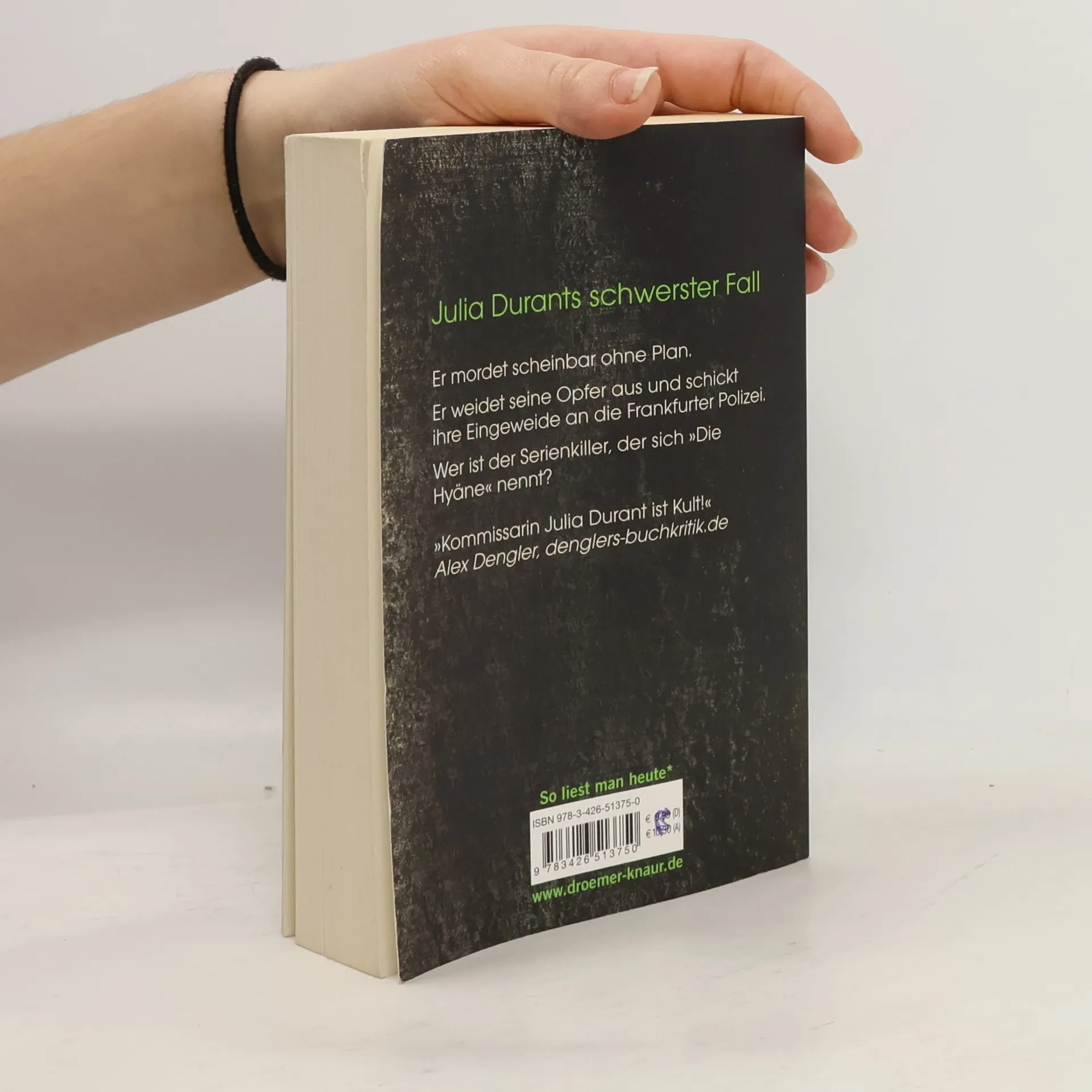 Seit ihrem ersten Fall zählt die Frankfurter Kommissarin Julia Durant zu den beliebtesten Ermittlerinnen in Deutschland. Ihre Leser lieben ihre manchmal spröde, kompromisslose, immer aber von großer Empathie geprägte Art. In ihrem 15. Fall bekommt es Julia mit einem Mörder zu tun, der sich selbst »Die Hyäne« nennt: Er mordet scheinbar ohne Plan und schickt die Eingeweide seiner Opfer an die Polizei.
