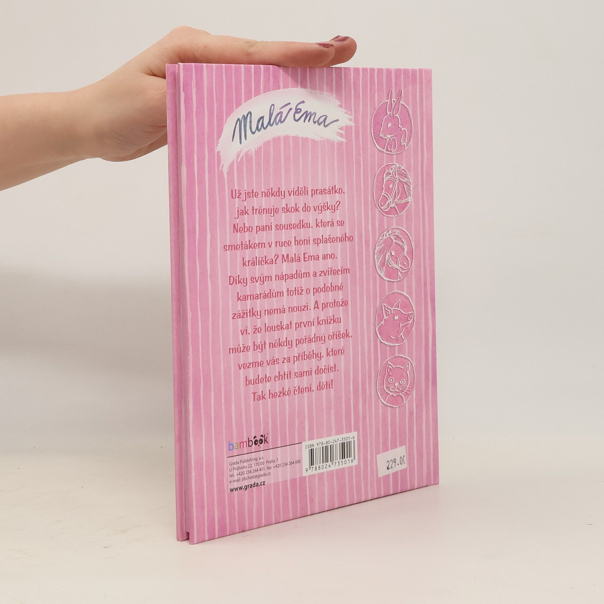 Už jste někdy viděli prasátko, jak trénuje skok do výšky? Paní sousedku, která se smetákem v ruce honí splašeného králíčka? Nebo baletky, které místo piruet skáčou před bílými myškami na parapety? Šestiletá Ema tohle všechno už zažila. A ještě mnoho dalších dobrodružství. Díky svým nápadům a věrným zvířecím kamarádům totiž o podobné psí kusy nemá ani v nejmenším nouzi. A protože ví, že louskat první knížku může být někdy pořádný oříšek, vezme začínající čtenáře za příběhy, které budou chtít sami dočíst.