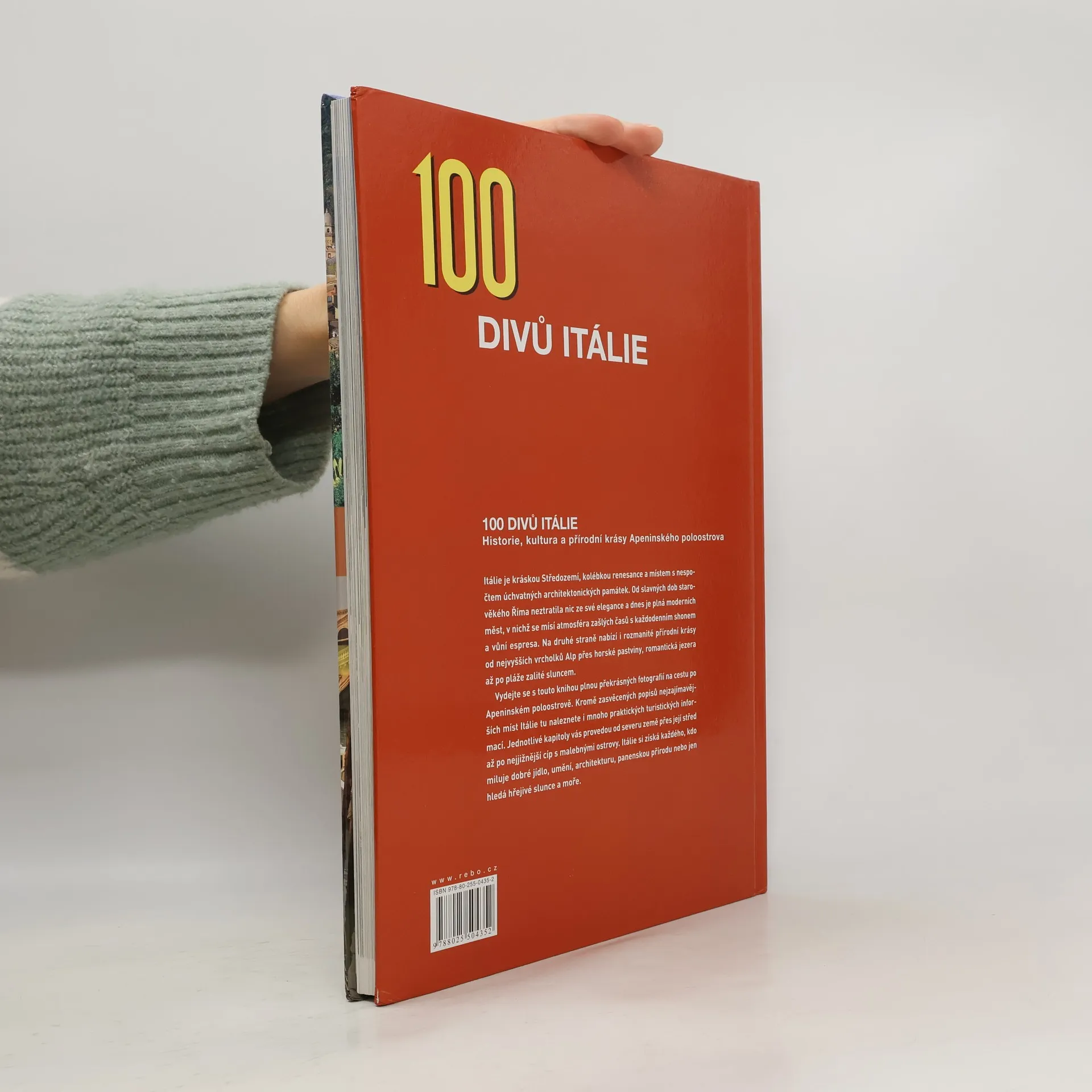 Překrásná výpravná publikace provede čtenáře těmi nejkrásnějšími místy Itálie. Od nejvyšších vrcholků Alp s malebnými vesničkami a horskými pastvinami, přes vyhřáté pláže a větrná pobřeží až k nejjižnějšímu cípu země. Ve výčtu zajímavých lokalit nechybějí ani největší a nejslavnější italská města. Kvalitní barevné fotografie čtenáři zprostředkují atmosféru země plné slunce, vína, dobrého jídla, módy a úchvatných památek.