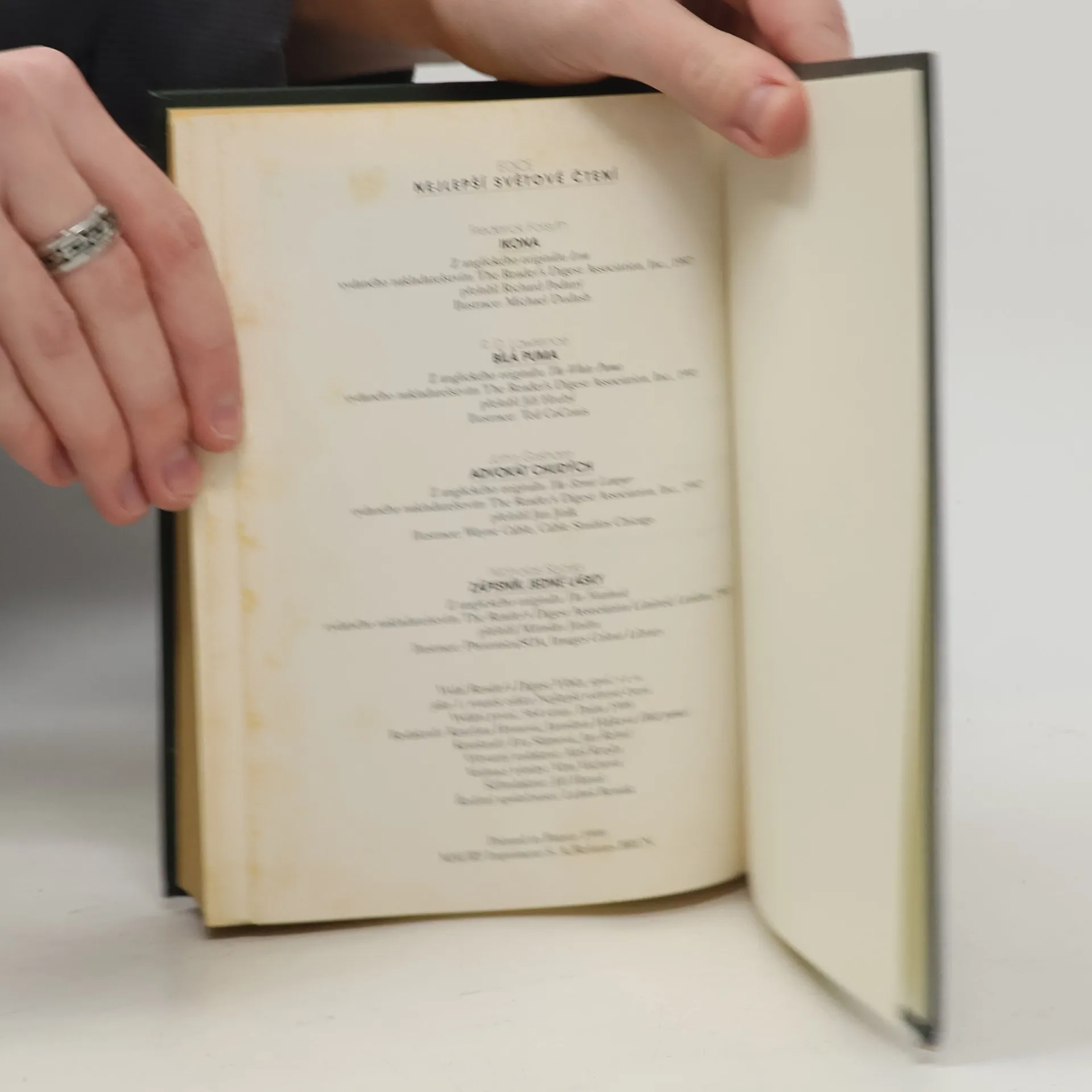 Ikona: Je rok 1999. Ruskem zmítají předvolební boje. Vítězství ultrapravicového politika Igora Komarova se zdá jisté - dokud na Západ neproniknout zprávy o jeho tajném programu, při nichž naskakuje husí kůže. Sir Nigel Irvine, bývalý šéf britské rozvědky, zorganizuje odvážnou výpravu, která má Komarova zastavit. Bílá puma: V horách západní Kanady se narodí vzácný exemplář pumy, sameček se srstí bílou jako sníh. Už jako mládě je odvážný, vynalézavý a má chuť se učit. Prozkoumává okolí, plíží se za veverkami a kočkuje se se svými sestřičkami. A když dospěje, musí využít všech nabytých dovedností - ba ještě víc - k tomu, aby přežil. Uprostřed krásné divočiny totiž číhají mnohá nebezpečí, včetně dvojice lidí, která se ho snaží dostat za každou cenu. Advokát chudých: Úspěšný právník Michael Brock je v jednom kole. Dělá kariéru, nemá čas obírat se vlastním svědomím. Nemá čas ani na své soukromí, dokud mu nečekané setkání s mužem bez střechy nad hlavou neobrátí svět vzhůru nohama. Kolegové v podniku se náhle chovají jako nepřátelé. A Michael sám přijme zaměstnání, o němž před tím téměř netušil, že existuje - stane se advokátem chudých. Zápisník jedné lásky: Nathan Calhoun nikdy nezapomněl na dívku, kterou potkal v létě roku 1932 a která mu učarovala navždy. Stránky zápisníku se plní vzpomínkami na první schůzky s Ally, na dlouhé odloučení - a na osudový den, kdy se Ally po čtrnácti letech vrátila, aby Nathanovi řekla, že se bude vdávat.... celý text