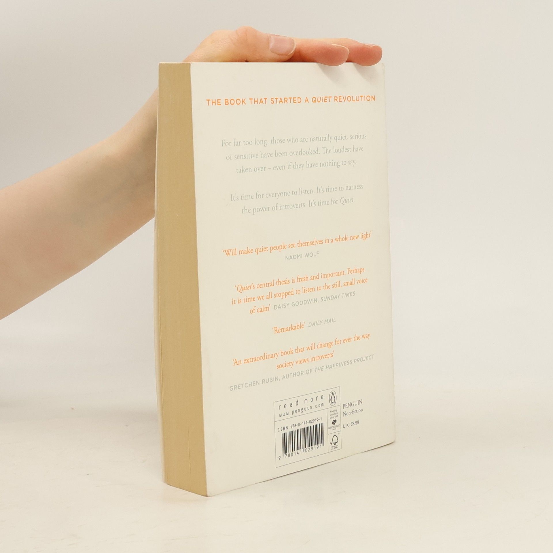 'Quiet is a startling, important and readable page-turner. It will make quiet people see through themselves in a whole new light.' Naomi Wolf, author of The Beauty Myth 'Once in a blue moon, a book comes along that gives us startling new insights. Quiet is that book: part page-turner, part cutting edge science, it will change the way you see yourself, other people, and the world.' Adam Grant, The Wharton School of Business 'Quiet legitimizes and even celebrates the 'niche' that represents half the people in the world. Think Malcolm Gladwell for people who don't take themselves too seriously. Mark my words, this book will be a bestseller.' Guy Kawasaki, author of Enchantment 'Happiness is . . . Quiet, an extraordinary book that will change for ever the way society views introverts. Superbly researched and deeply insightful, Quiet is an indispensable resource for anyone who wants to understand the gifts of the introverted half of the population.' Gretchen Rubin, author of The Happiness Project 'An intriguing and potentially life-altering examination of the human psyche that is sure to benefit both introverts and extroverts alike.' Kirkus Reviews