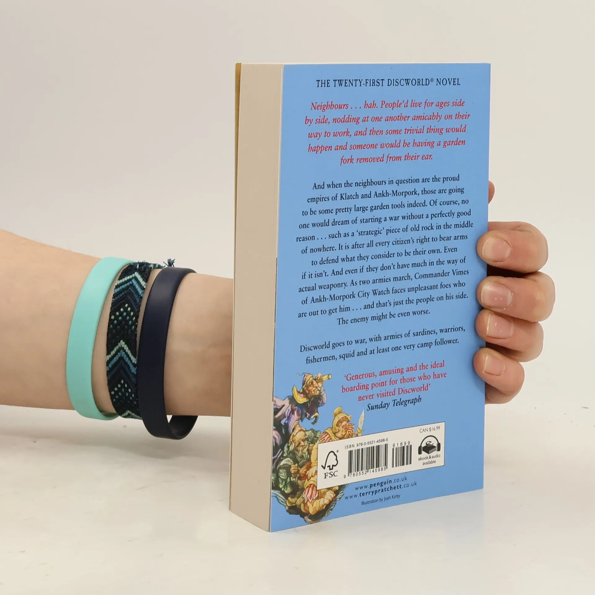 Discworld goes to war, with armies of sardines, warriors, fishermen, squid and at least one very camp follower. As two armies march, Commander Vimes of Ankh-Morpork City Watch faces unpleasant foes who are out to get him and that's just the people on his side. The enemy might be even worse.
