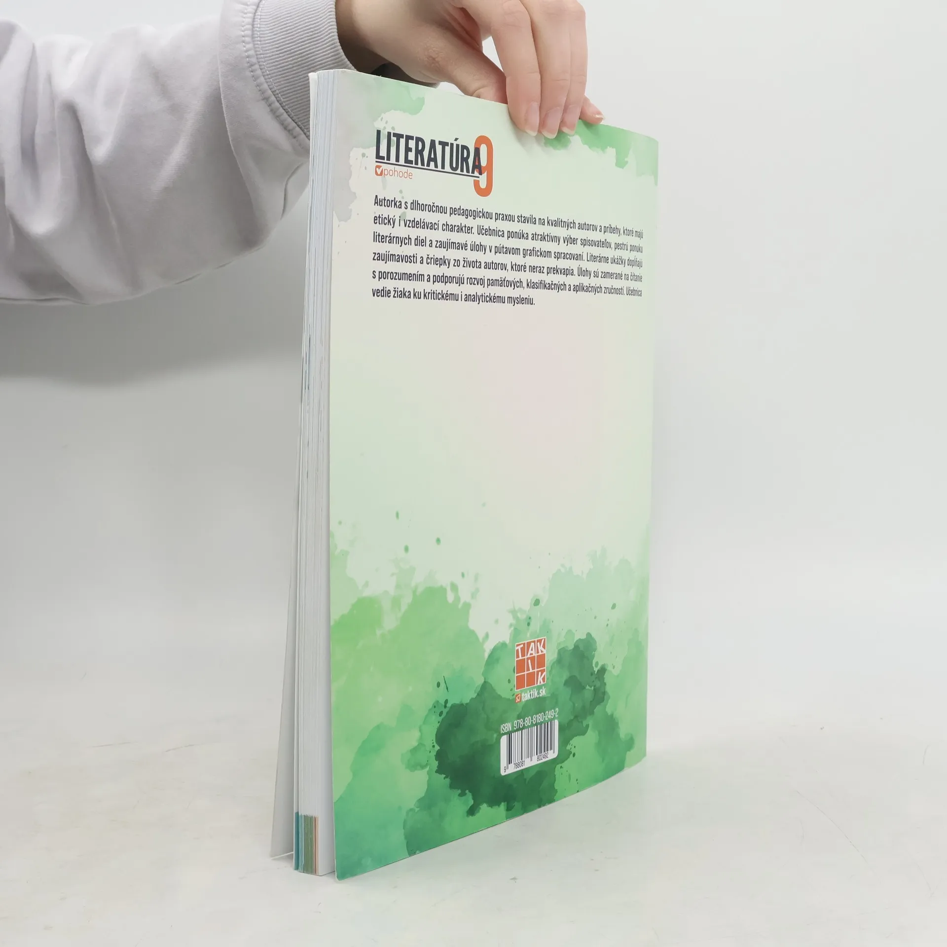 Učebnica Literatúra v pohode 9 ponúka žiakom atraktívny prehľad literárnych druhov umeleckej lyriky, epiky a drámy, ako aj predstavenie vecnej literatúry. Autorka s dlhoročnou pedagogickou praxou stavila na kvalitných autorov a príbehy, ktoré majú etický i vzdelávací charakter. Každá téma obsahuje okrem základných teoretických poznatkov a zaujímavých ukážok i pestrú skladbu tvorivých úloh na rozvoj pamäťových, klasifikačných a aplikačných zručností (reprodukuj - vyhľadaj - zamysli sa) a množstvo spoločensko-historických zaujímavostí. Literatúra v pohode neostane nič dlžná svojmu názvu – prináša súčasné, atraktívne ukážky, zaujímavé úlohy a v deviatakoch buduje nenúteným spôsobom lásku k literatúre a rozvíja čítanie s porozumením i kritické myslenie.
