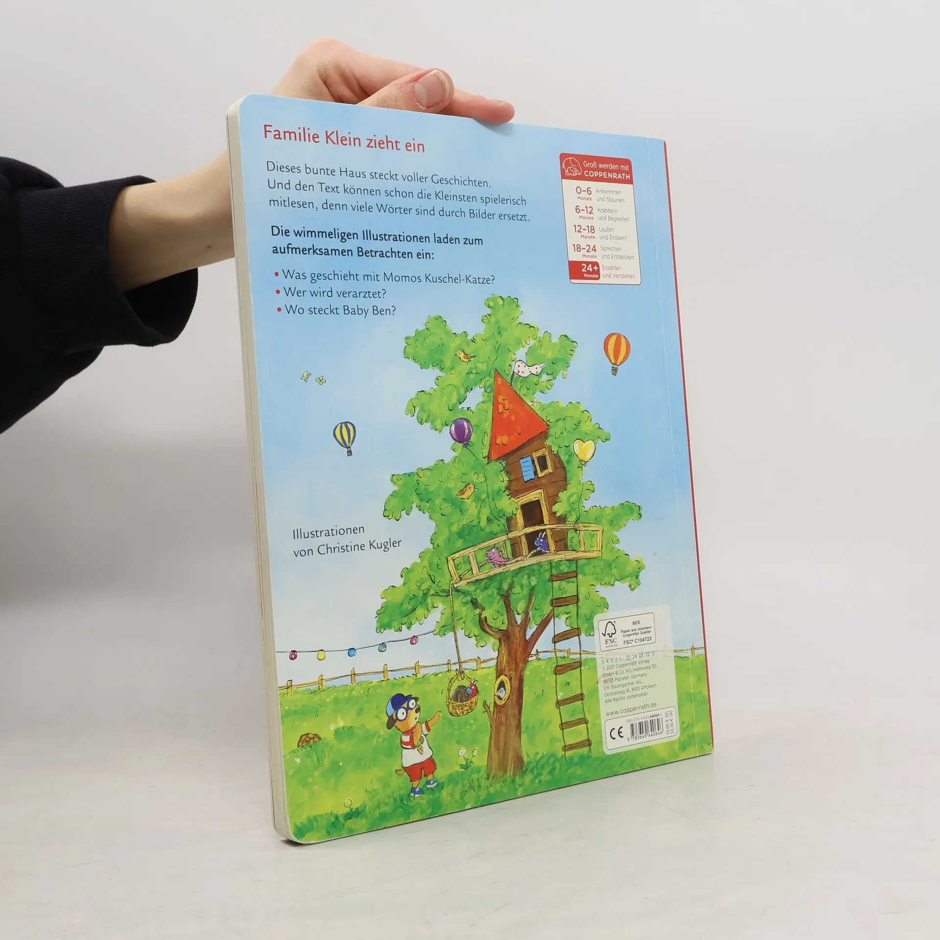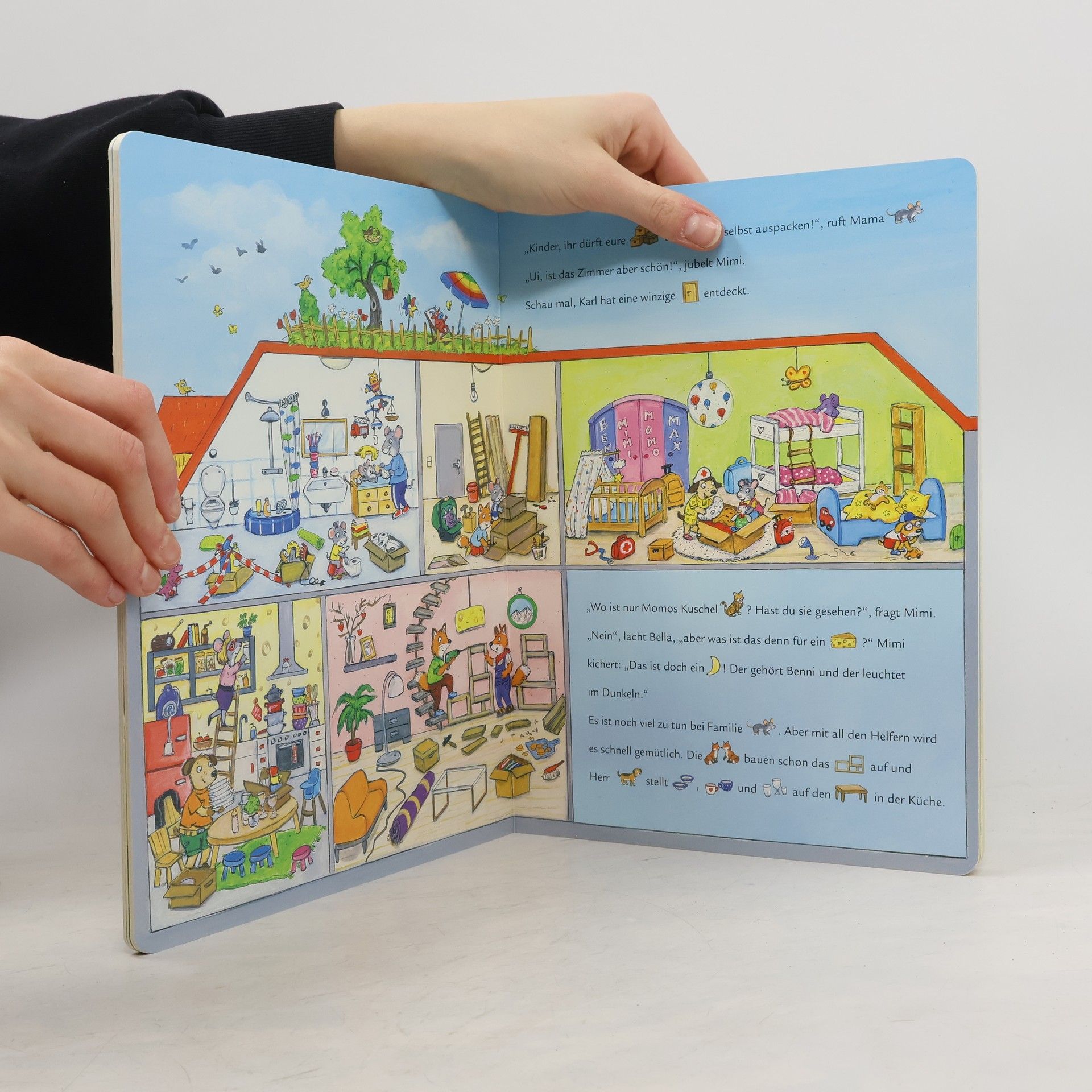 Familie Klein zieht ein! Dieses bunte Haus steckt voller Geschichten. Und den Text können schon die Kleinsten spielerisch mitlesen, denn viele der Wörter sind durch Bilder ersetzt. Die wimmeligen Illustrationen laden zum aufmerksamen Betrachten ein: Was geschieht mit Momos Kuschel-Katze? Wer wird verarztet und wo steckt Baby Ben? Darüber hinaus schaffen die Bilder viele Erzählanlässe, denn wer genau hinschaut erkennt: Die Familien selbst sind so bunt wie das Haus, in dem sie leben.