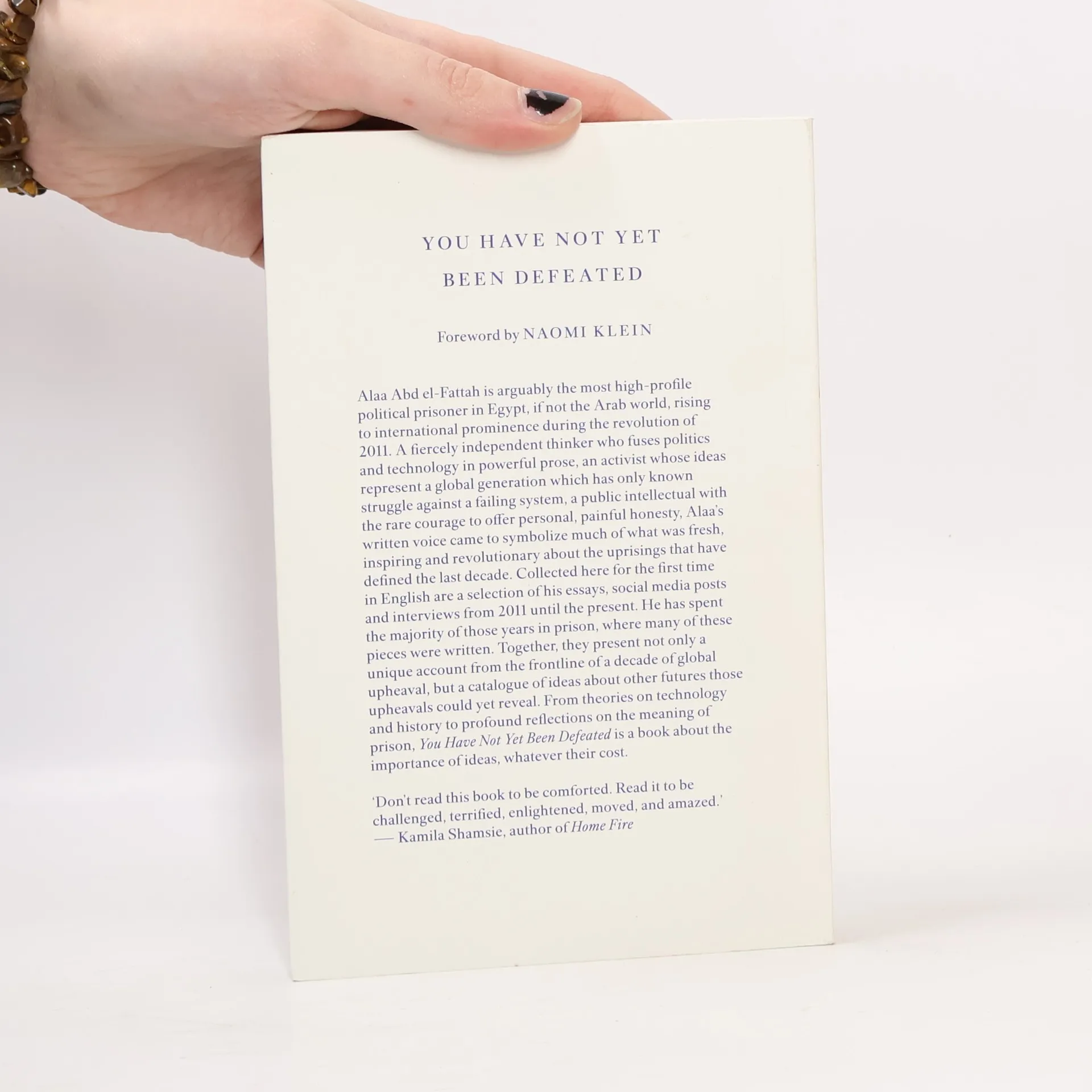 Arguably the most high profile political prisoner in Egypt, if not the Arab world, Alaa Abd el-Fattah has been in prison for most of the last seven years. You Have Not Yet Been Defeated collects his writings between 2011-2021, many of them smuggled out of his cell.