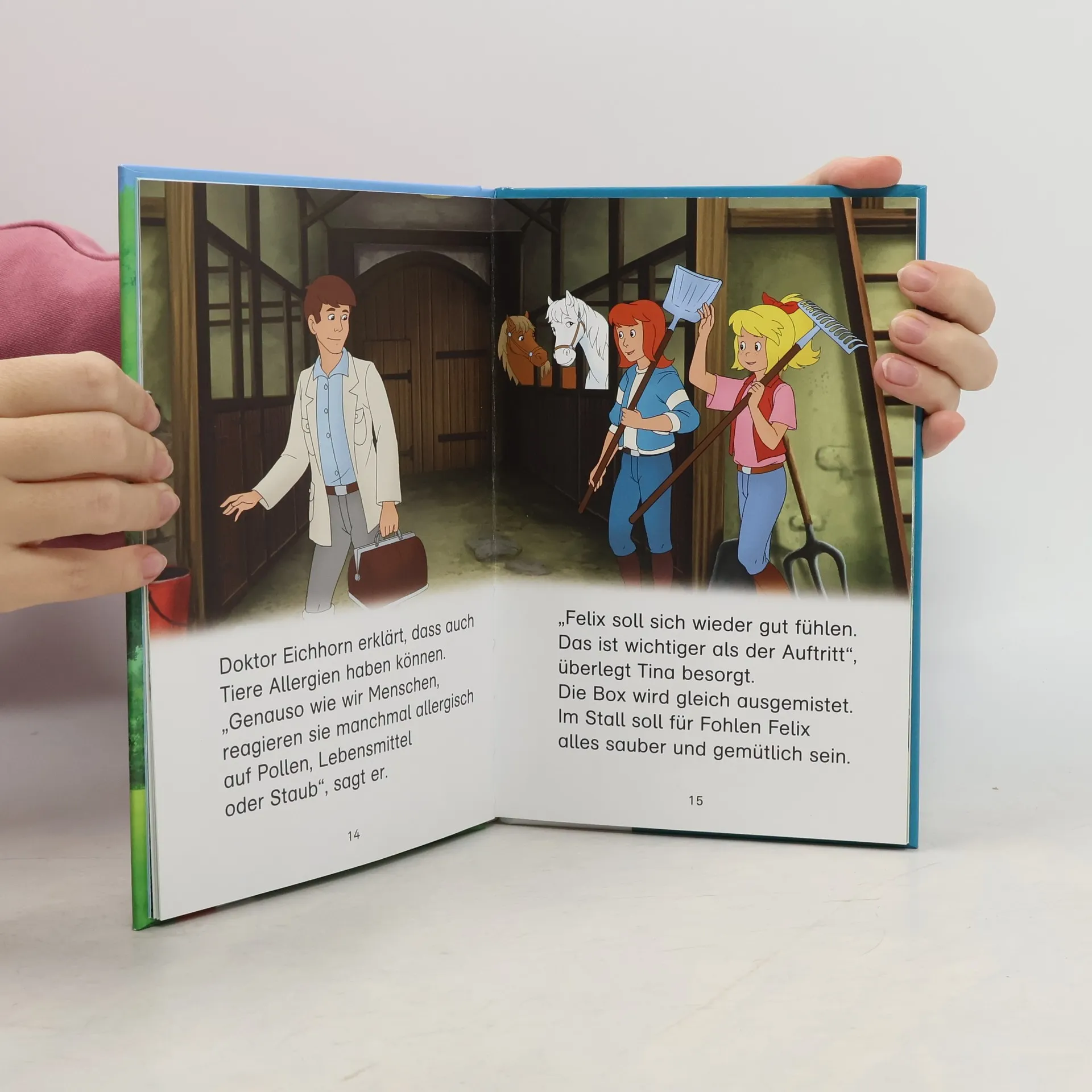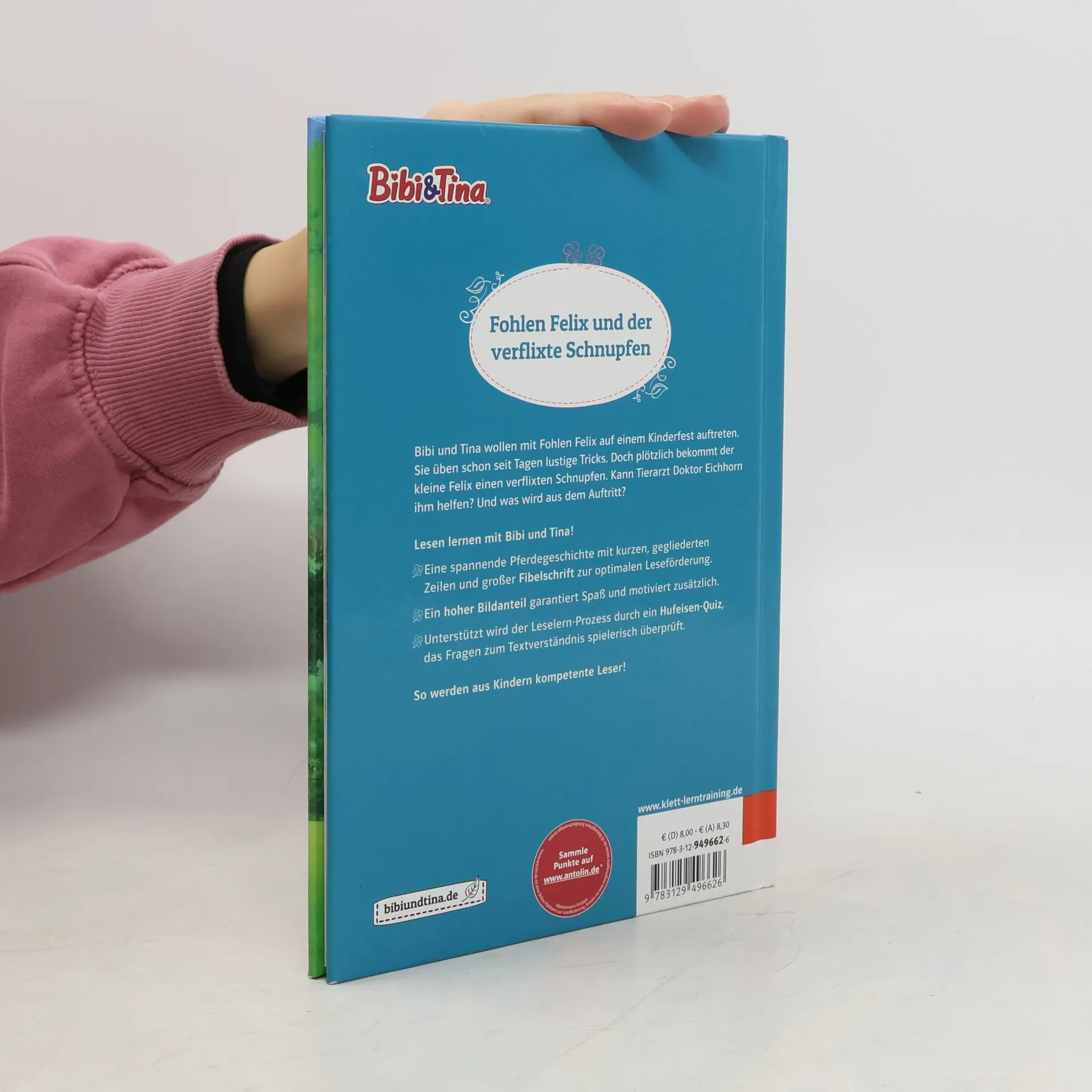 Lesen lernen mit Bibi und Tina – das Bibi und Tina Buch für die 1. Klasse Bibi und Tina wollen mit Fohlen Felix auf einem Kinderfest auftreten. Sie üben schon seit Tagen lustige Tricks. Doch plötzlich bekommt der kleine Felix einen verflixten Schnupfen. Kann Tierarzt Doktor Eichhorn ihm helfen? Und was wird aus dem Auftritt? Eine spannende Pferdegeschichte mit großer Fibelschrift zur optimalen Leseförderung Viele Bilder motivieren beim Lesen und machen Spaß Das Hufeisenquiz unterstüzt den Leselern-Prozess und überprüft spielerisch das Textverständnis der Leseanfänger Ein pferdestarkes Geschenk für Mädchen und Jungen ab 6 Jahre So werden aus Kindern kompetente Leser!