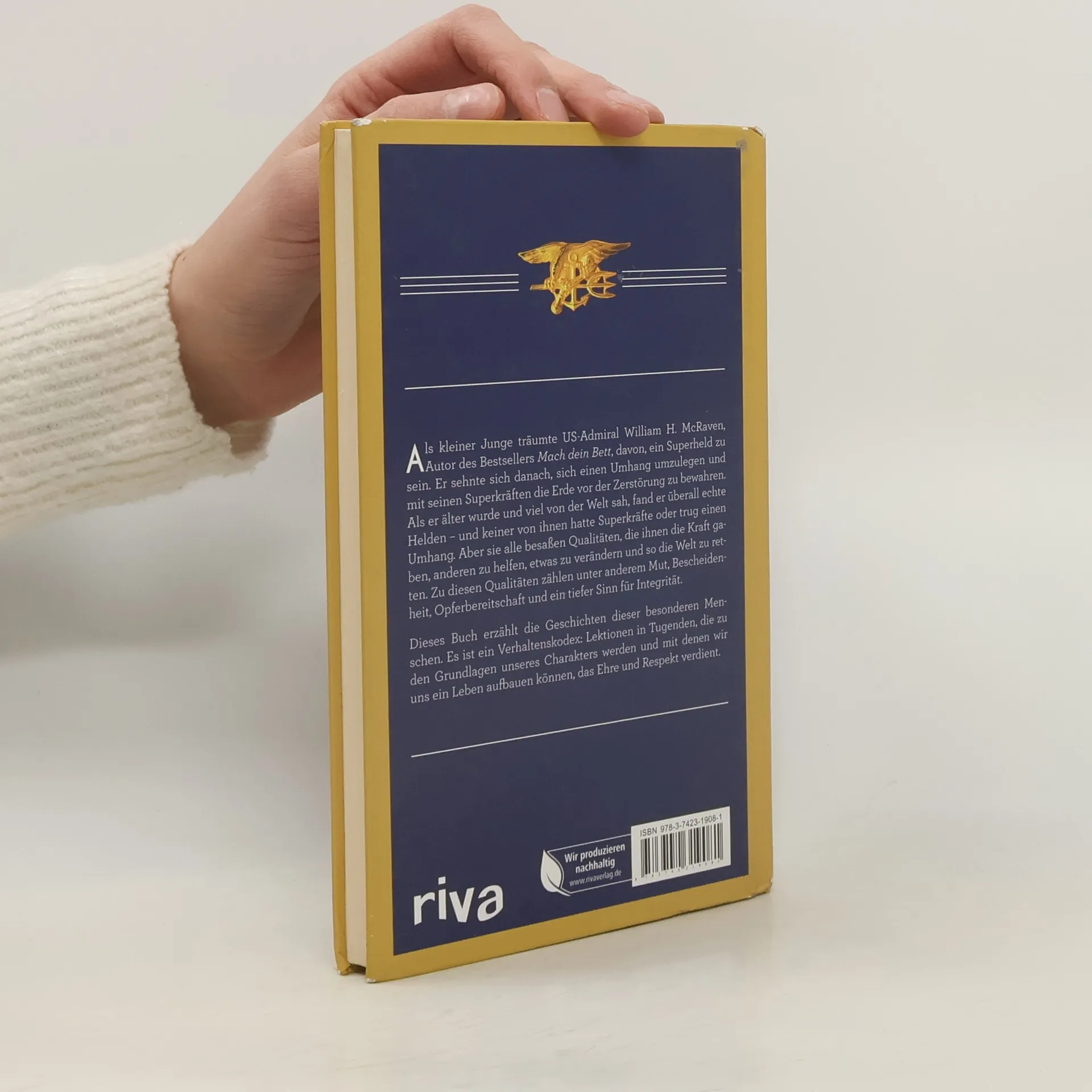 Als kleiner Junge träumte US-Admiral William H. McRaven, Autor des Bestsellers Mach dein Bett, davon, ein Superheld zu sein. Er sehnte sich danach, sich einen Umhang umzulegen und mit seinen Superkräften die Erde vor der Zerstörung zu bewahren. Als er älter wurde und viel von der Welt sah, fand er überall echte Helden – und keiner von ihnen hatte Superkräfte oder trug einen Umhang. Aber sie alle besaßen Qualitäten, die ihnen die Kraft gaben, anderen zu helfen, etwas zu verändern und so die Welt zu retten. Zu diesen Qualitäten zählen unter anderem Mut, Bescheidenheit, Opferbereitschaft und ein tiefer Sinn für Integrität. Dieses Buch erzählt die Geschichten dieser besonderen Menschen. Es ist ein Verhaltenskodex: Lektionen in Tugenden, die zu den Grundlagen unseres Charakters werden und mit denen wir uns ein Leben aufbauen können, das Ehre und Respekt verdient.