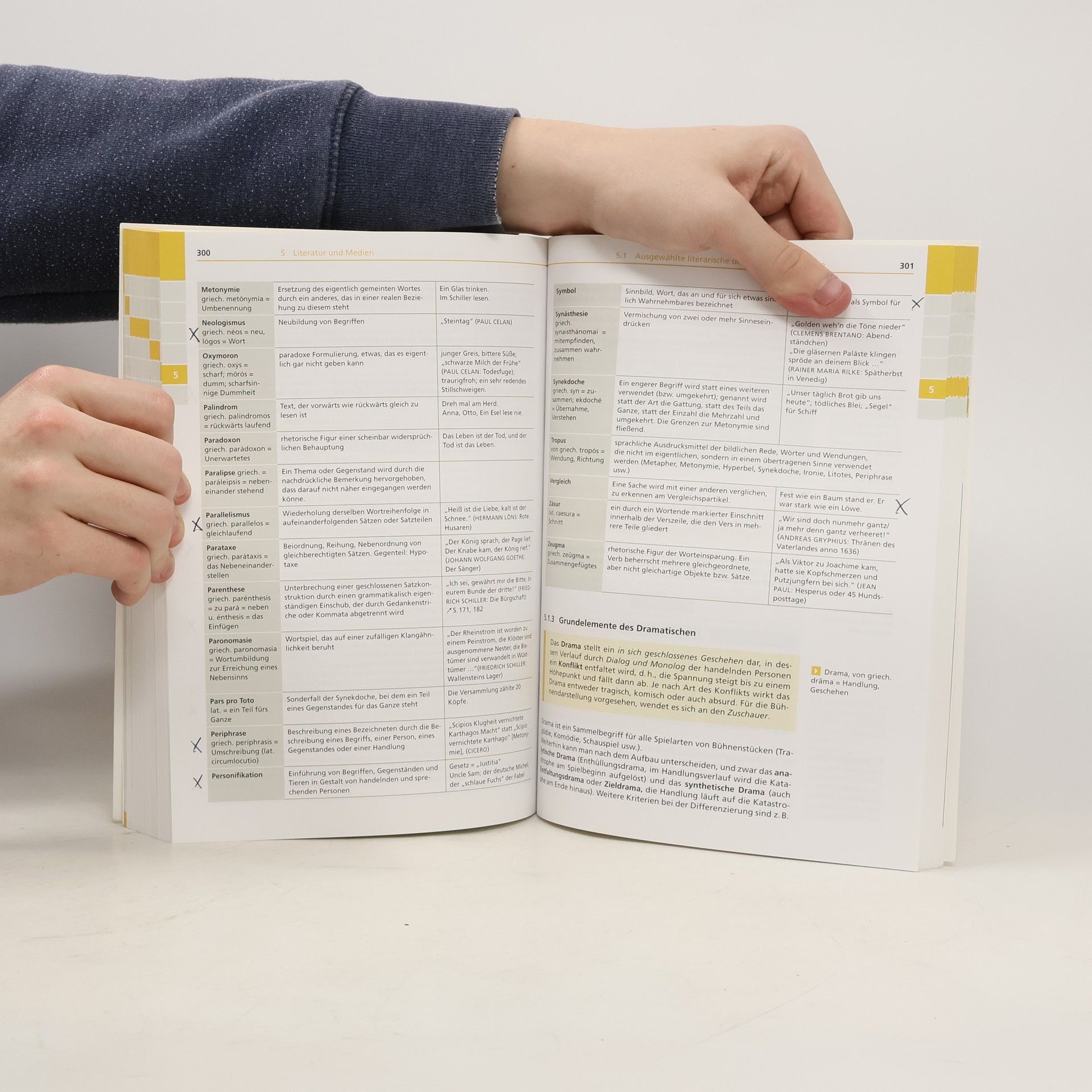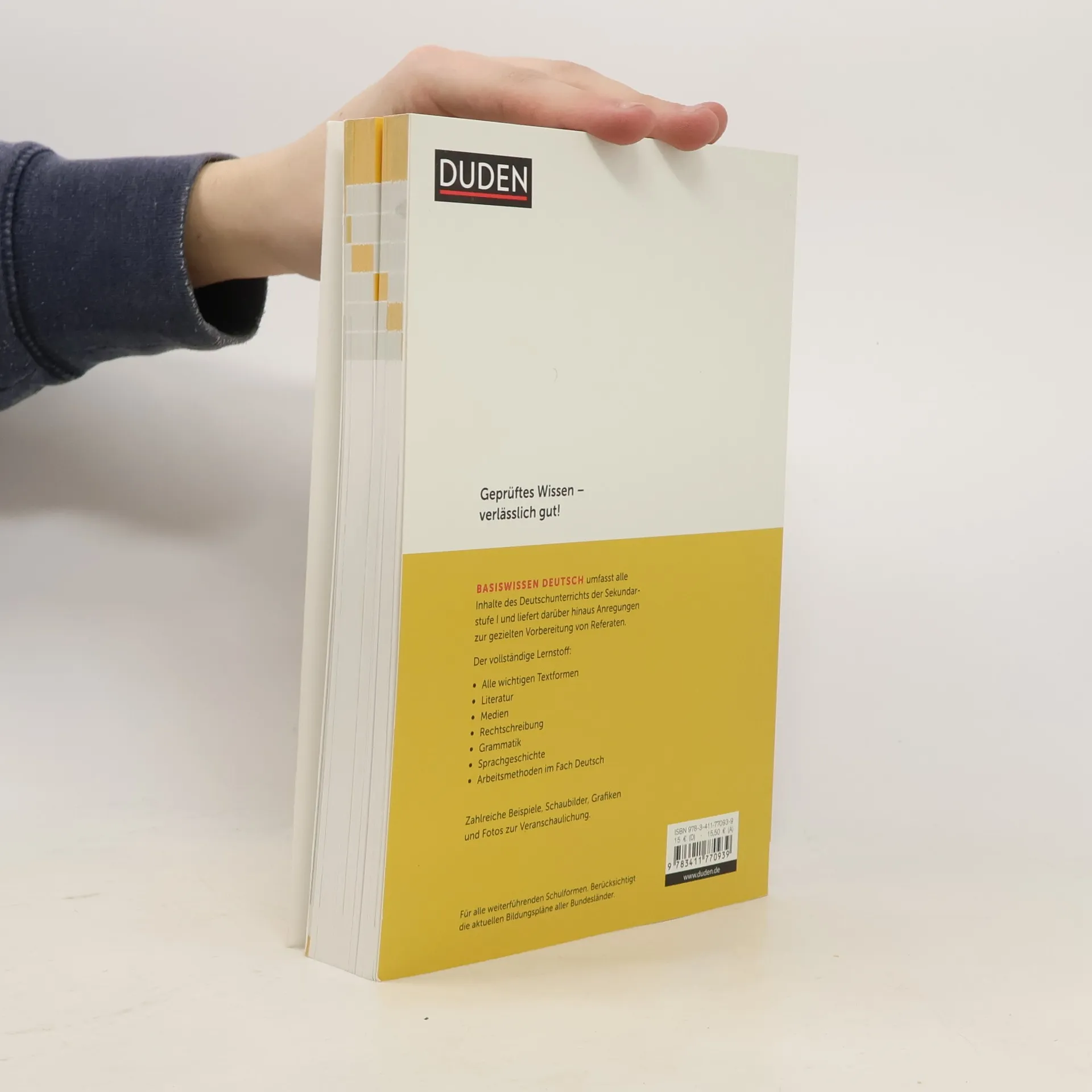 Der bewährte Titel (zuletzt s. ID-A 51/14) liegt nun in nur behutsam veränderter Neuauflage vor. Er umfasst alleInhalte des Deutschunterrichts der Sekundarstufe I, gibt aber dazu auch Tipps zur gezielten Vorbereitung von Referaten. Zahlreiche Beispiele, Schaubilder, Zeichnungen und Fotos lockern den Text auf und veranschaulichen denLernstoff. Im Anhang findet sich ein Register. Von der Fülle des Stoffs und der Schwierigkeit mancher Themen herhandelt es sich schon bald um ein germanistisches Grundlagenwerk für Laien, das aber als Gesamtüberblick gut geeignet und verständlich ist. Die Vorauflage muss nicht unbedingt ersetzt werden. (1 S) LK/MH: Meissner