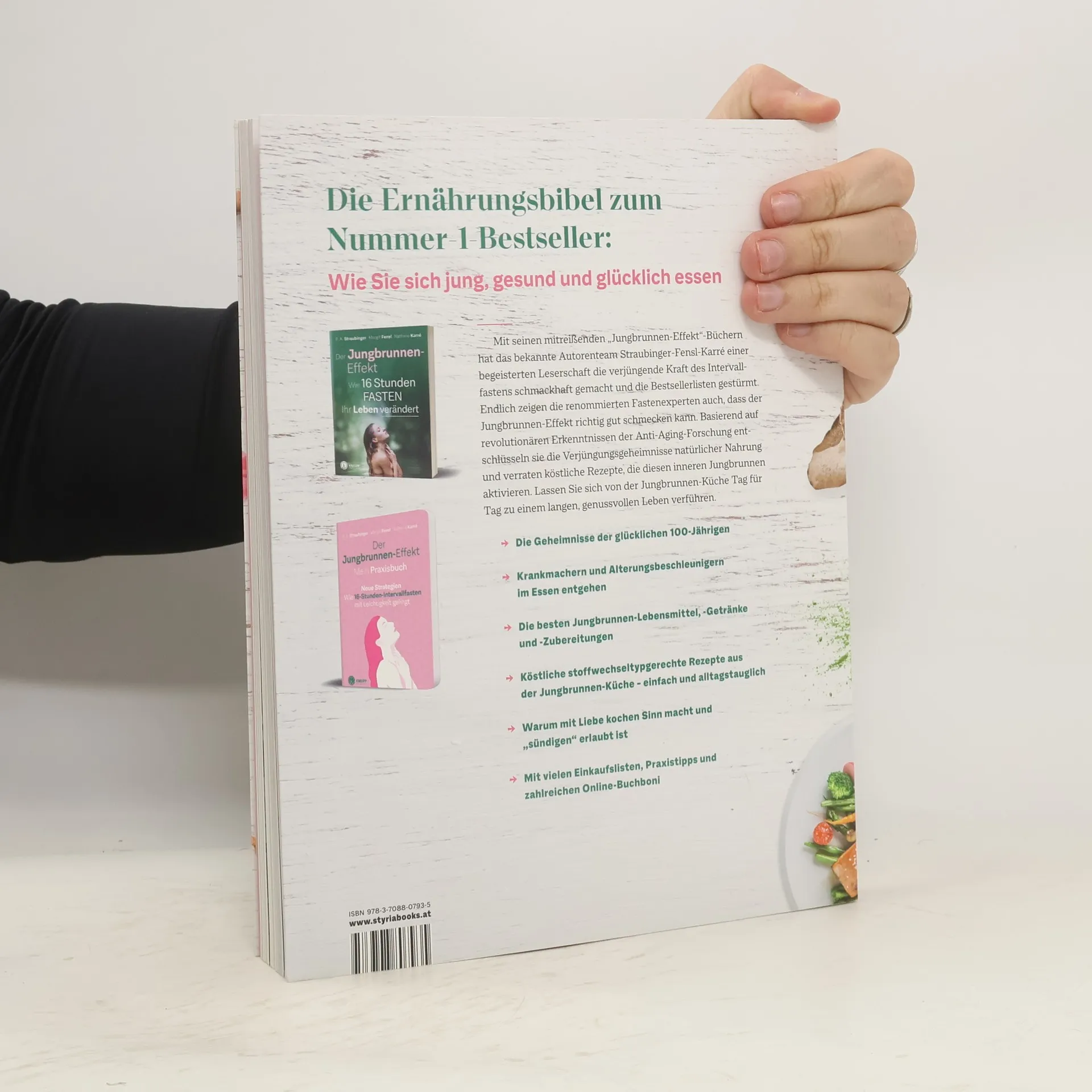 Die Ernährungsbibel zum Wie Sie sich jung, gesund und glücklich essenMit seinen mitreißenden "Jungbrunnen-Effekt"-Büchern hat das bekannte Autorenteam Straubinger-Fensl-Karré einer begeisterten Leserschaft die verjüngende Kraft des Intervallfastens schmackhaft gemacht und die Bestsellerlisten gestürmt.Endlich zeigen die renommierten Fastenexperten auch, dass der Jungbrunnen-Effekt richtig gut schmecken kann. Basierend auf revolutionären Erkenntnissen der Anti-Aging-Forschung entschlüsseln sie die Verjüngungsgeheimnisse natürlicher Nahrung und verraten köstliche Rezepte, die diesen inneren Jungbrunnen aktivieren. Lassen Sie sich von der Jungbrunnen-Küche Tag für Tag zu einem langen, genussvollen Leben verführen.Die Geheimnisse der glücklichen 100-JährigenKrankmachern und Alterungsbeschleunigern im Essen entgehenDie besten Jungbrunnen-Lebensmittel, -Getränke und -ZubereitungenKöstliche stoffwechseltypgerechte Rezepte aus der Jungbrunnen-Küche – einfach und alltagstauglichWarum mit Liebe kochen Sinn macht und "sündigen" erlaubt istMit vielen Einkaufslisten, Praxistipps und zahlreichen Online-Buchboni