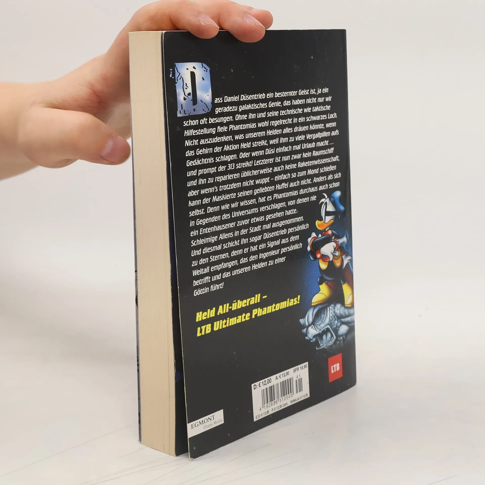 Dass Daniel Düsentrieb ein besternter Geist ist, ja ein geradezu galaktisches Genie, das haben nicht nur wir schon oft besungen. Ohne ihn und seine technische wie taktische Hilfestellung fiele Phantomias wohl regelrecht in ein schwarzes Loch. Nicht auszudenken, was unserem Helden alles dräuen könnte, wenn das Gehirn der Aktion Held streikt, weil ihm zu viele Vergallpillen aufs Gedächtnis schlagen. Oder wenn Düsi einfach mal Urlaub macht … und prompt der 313 streikt! Letzterer ist nun zwar kein Raumschiff und ihn zu reparieren üblicherweise auch keine Raketenwissenschaft, aber wenn’s trotzdem nicht wuppt – einfach so zum Mond schießen kann der Maskierte seinen geliebten Huffel auch nicht. Anders als sich selbst. Denn wie wir wissen, hat es Phantomias durchaus auch schon in Gegenden des Universums verschlagen, von denen nie ein Entenhausener zuvor etwas gesehen hatte. Schleimige Aliens in der Stadt mal ausgenommen. Und diesmal schickt ihn sogar Düsentrieb persönlich zu den Sternen, denn er hat ein Signal aus dem Weltall empfangen, das den Ingenieur persönlich betrifft und das unseren Helden zu einer Göttin führt!
