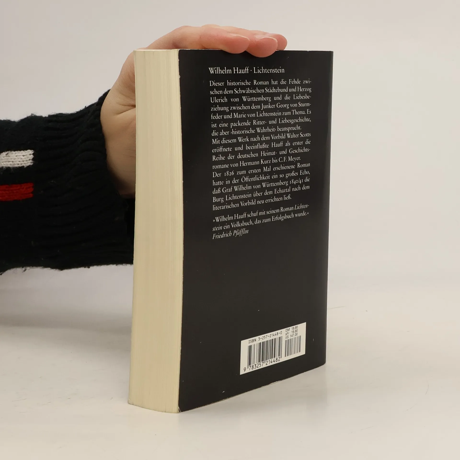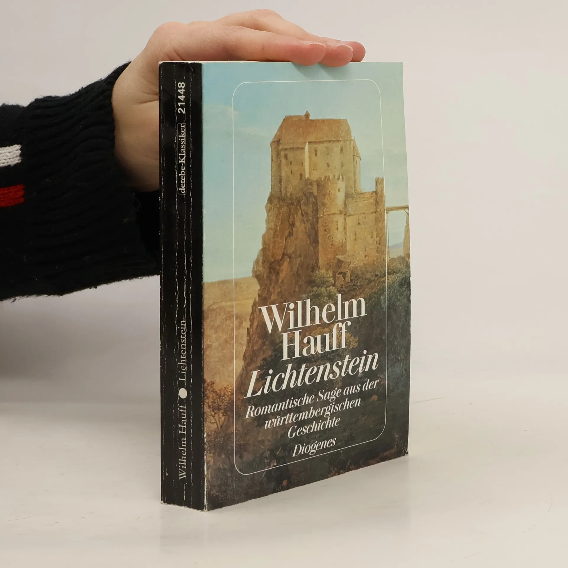Wilhelm Hauff: Lichtenstein. Romantische Sage aus der wurttembergischen Geschichte Erstdruck: Stuttgart (Franckh) 1826. Buchdeckel mit Prägung sowie mit Bild- und Goldaufdruck, marmorierter Schnitt, mit Frontispiz, sowie schützendes Transparentblatt, Lesebändchen Ausgabe vor 1893
