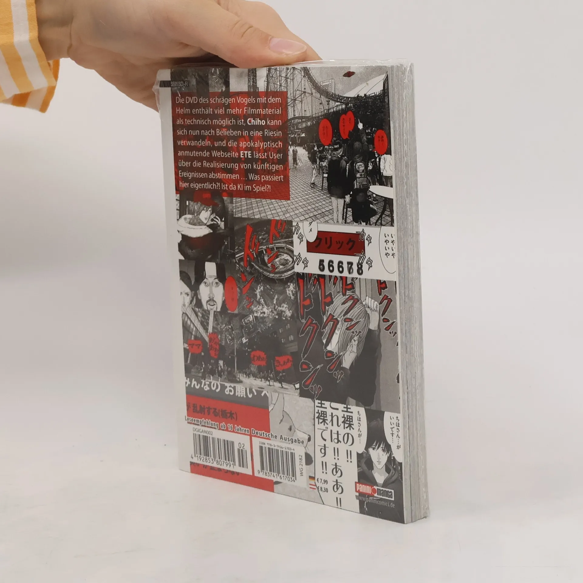 Die DVD des schrägen Vogels mit Helm enthält viel mehr Filmmaterial als technisch möglich ist, Chiho kann sich nun nach Belieben in eine Riesin verwandeln, und die apokalyptisch anmutende Webseite ETE lässt User über die Realisierung von künftigen Ereignissen abstimmen … Was passiert hier eigentlich?! Ist da KI im Spiel?