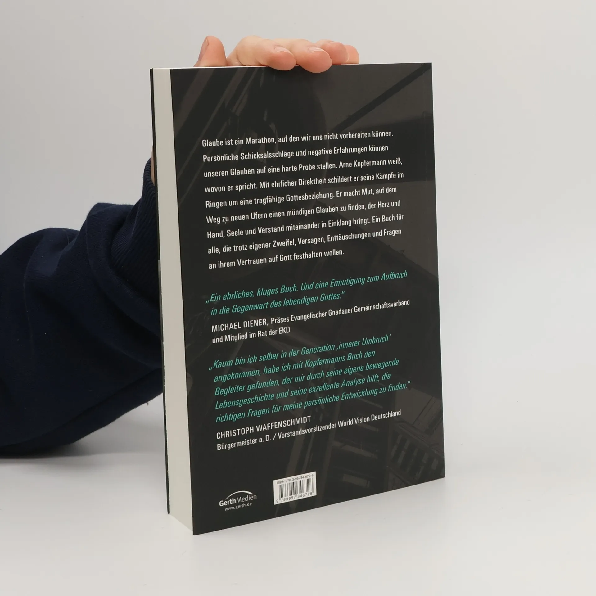 Glaube ist ein Marathon, auf den wir uns nicht vorbereiten können. Persönliche Schicksalsschläge und negative Erfahrungen können unseren Glauben auf eine harte Probe stellen. Arne Kopfermann weiß, wovon er spricht. Mit ehrlicher Direktheit schildert er seine Kämpfe im Ringen um eine tragfähige Gottesbeziehung. Er macht Mut, auf dem Weg zu neuen Ufern einen mündigen Glauben zu finden, der Herz und Hand, Seele und Verstand miteinander in Einklang bringt. Ein Buch für alle, die trotz eigener Zweifel, Versagen, Enttäuschungen und Fragen an ihrem Vertrauen auf Gott festhalten wollen.