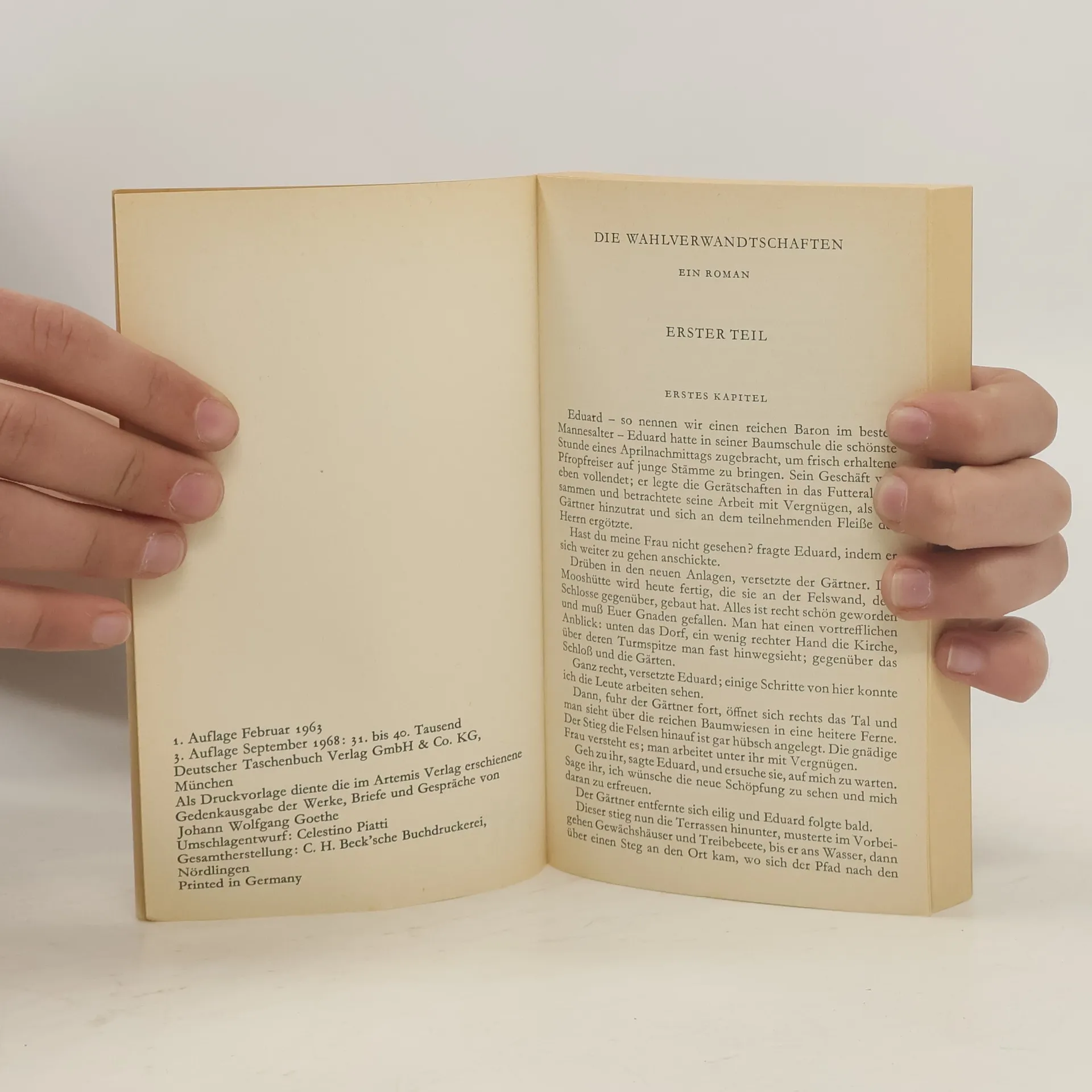 Johann Wolfgang Goethe ; Erläuterungen Von Hans-j. Weitz ; Mit Einem Essay Von Walter Benjamin, Goethes Wahlverwandtschaften. Revidierter Text Des Insel-goethe--t.p. Verso.