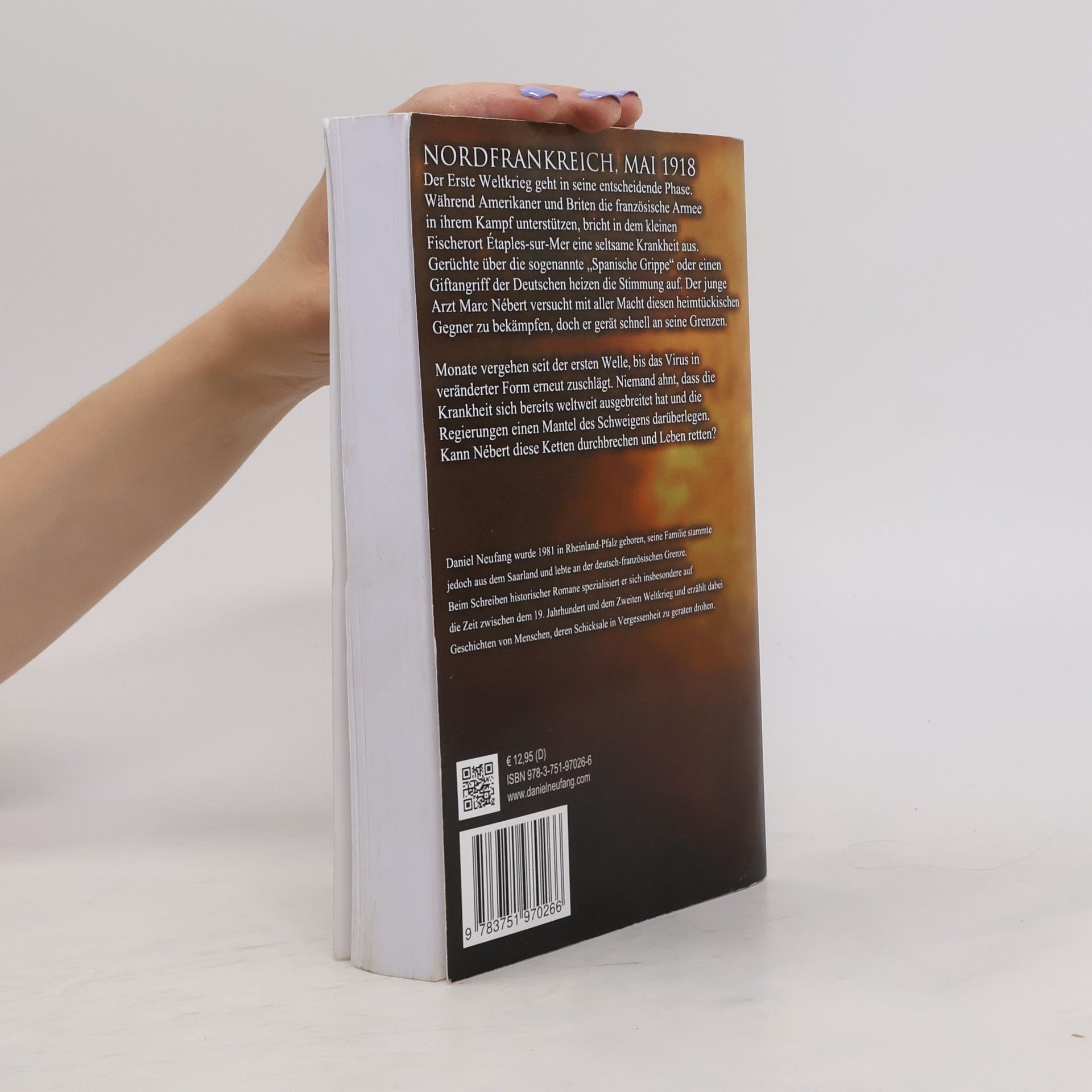ÜBERARBEITETE NEUAUFLAGE Nordfrankreich, Mai 1918. Der Erste Weltkrieg geht in seine entscheidende Phase. Während Amerikaner und Briten die französische Armee in ihrem Kampf unterstützen, bricht in dem kleinen Fischerort Étaples-sur-mer eine seltsame Krankheit aus. Gerüchte über die sogenannte"Spanische Grippe" oder einen Giftangriff der Deutschen heizen die Stimmung auf. Der junge Arzt Marc Nébert versucht mit aller Macht diesen heimtückischen Gegner zu bekämpfen, doch er gerät schnell an seine Grenzen. Monate vergehen nach der ersten Welle, bis das Virus in veränderter Form erneut zuschlägt. Niemand ahnt, dass die Krankheit sich bereits weltweit ausbreitet und die Regierungen einen Mantel des Schweigens darüberlegen. Kann Nébert diese Ketten durchbrechen und somit Leben retten?