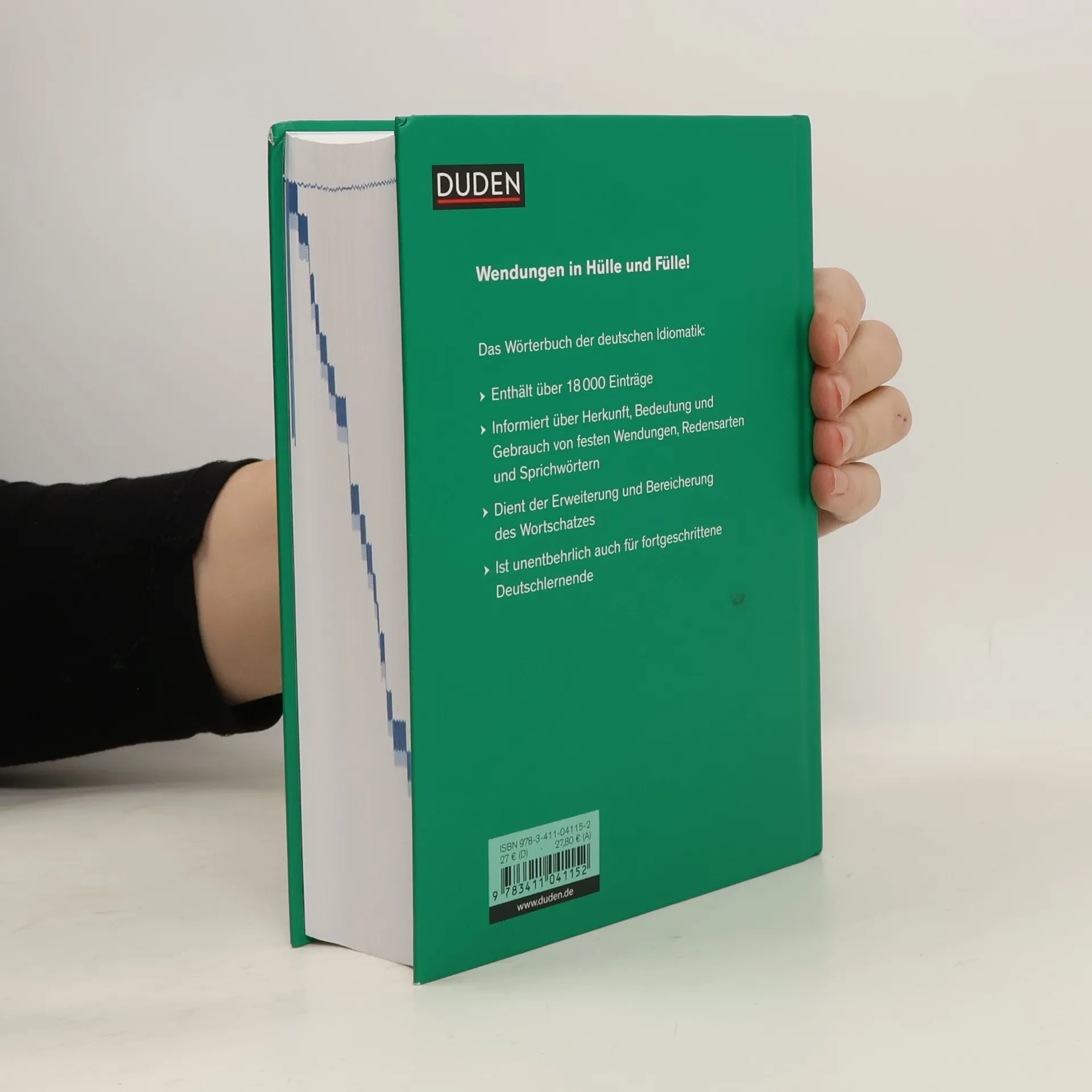Für wen Redewendungen wie „den Teufel an die Wand malen", „allerhöchste Eisenbahn", „von der Rolle sein" oder „da knurrt der Blindenhund" noch „böhmische Dörfer" sind, dem hilft dieser Dudenband weiter. Das Wörterbuch der deutschen Idiomatik informiert über Herkunft, Bedeutung und Gebrauch von über 18.000 festen Wendungen, Redensarten und Sprichwörtern und enthält viele neue Einträge und Infokästen. Ein unentbehrliches Nachschlagewerk - auch für fortgeschrittene Deutschlernende.
