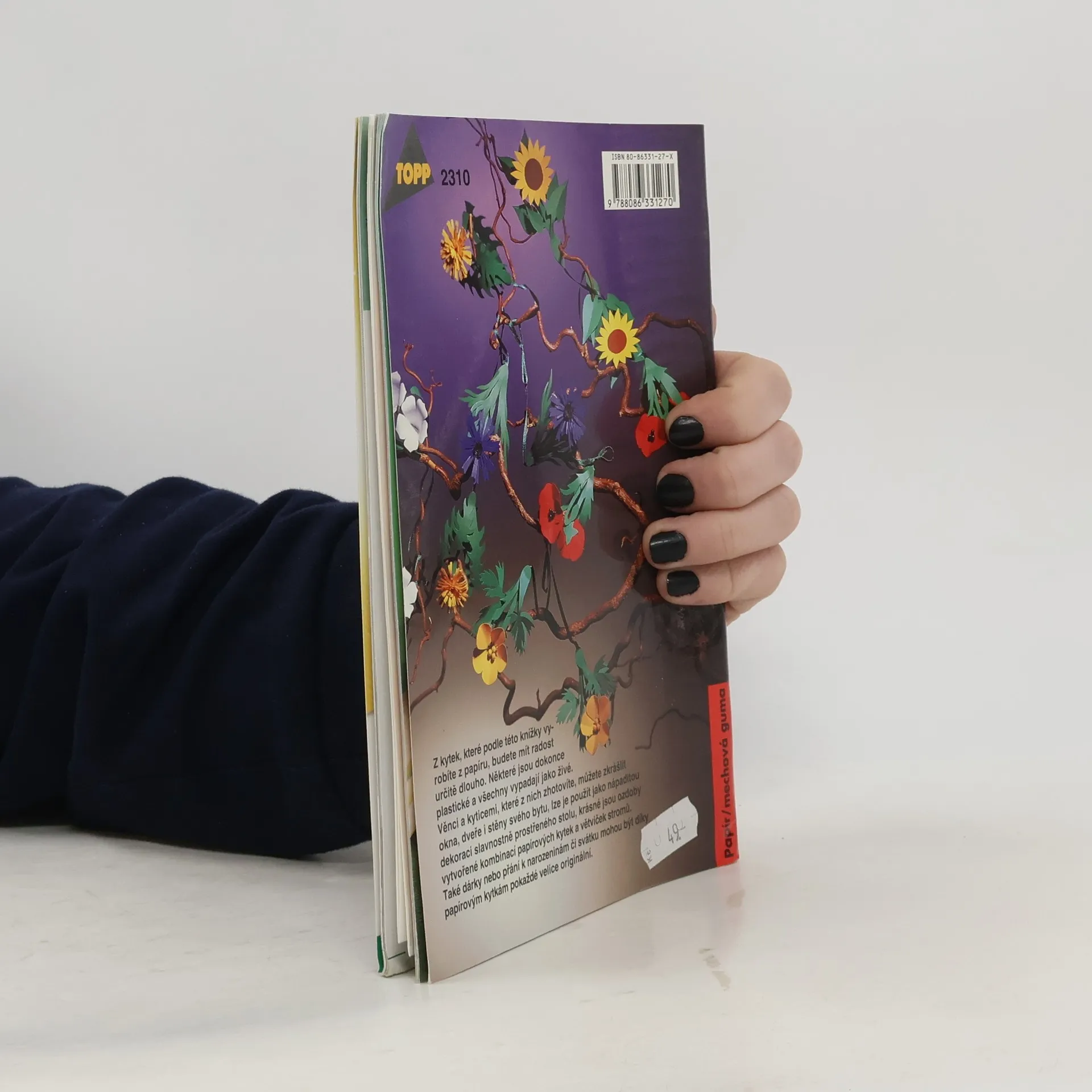Návody na výrobu papírových kytek, i plastických. Věnci a kyticemi je možno zkrášlit okna, dveře i stěny bytu, lze je použít jako dekoraci slavnostního stolu. Krásné jsou ozdoby vytvořené kombinací papírových kytek a větviček stromů. I dárky a přání k narozeninám či svátku mohou být díky papírovým kytkám pokaždé velmi originální. Pro všechny věkové kategorie.
