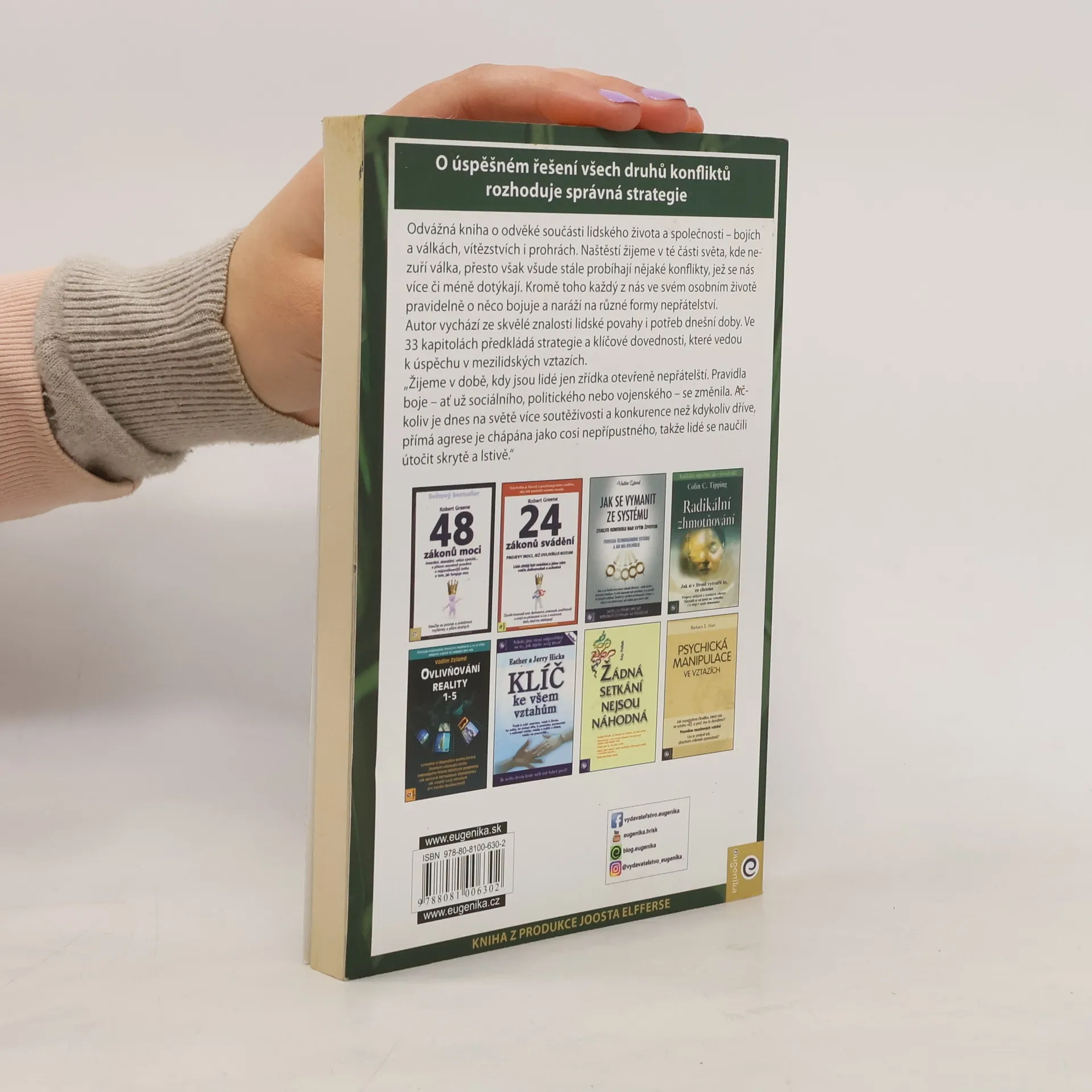Počátečním bodem pro určení správné strategie je vaše mysl. Staňte se skutečným mistrem strategie při řešení všech druhů konfliktů. Mysl, která nevidí svět jasně a nedokáže rozpoznat priority, vytváří strategie, jež se vždy minou účinkem. Odvážná kniha o odvěké součásti lidského života a společnosti – bojování a válčení, vítězství a prohře. Díkybohu žijeme v části světa, kde nezuří válka, přesto však všude stále probíhají nějaké konflikty, jež se nás více či méně dotýkají. Kromě toho každý z nás ve svém osobním životě pravidelně o něco bojuje a naráží na různé formy nepřátelství. Autor vychází ze skvělé znalosti lidské povahy i potřeb dnešní doby. Ve 33 kapitolách předkládá strategie a klíčové dovednosti, které vedou k úspěchu a síle. Ty podkládá citáty osobností, jež se staly v dějinách známými úspěšnými dobyvateli či válečnými stratégy, jako například Napoleon či Winston Churchill, nejvíc však cituje staré čínské dílo Umění války od Sun-c’ (4. století př. n. l.).