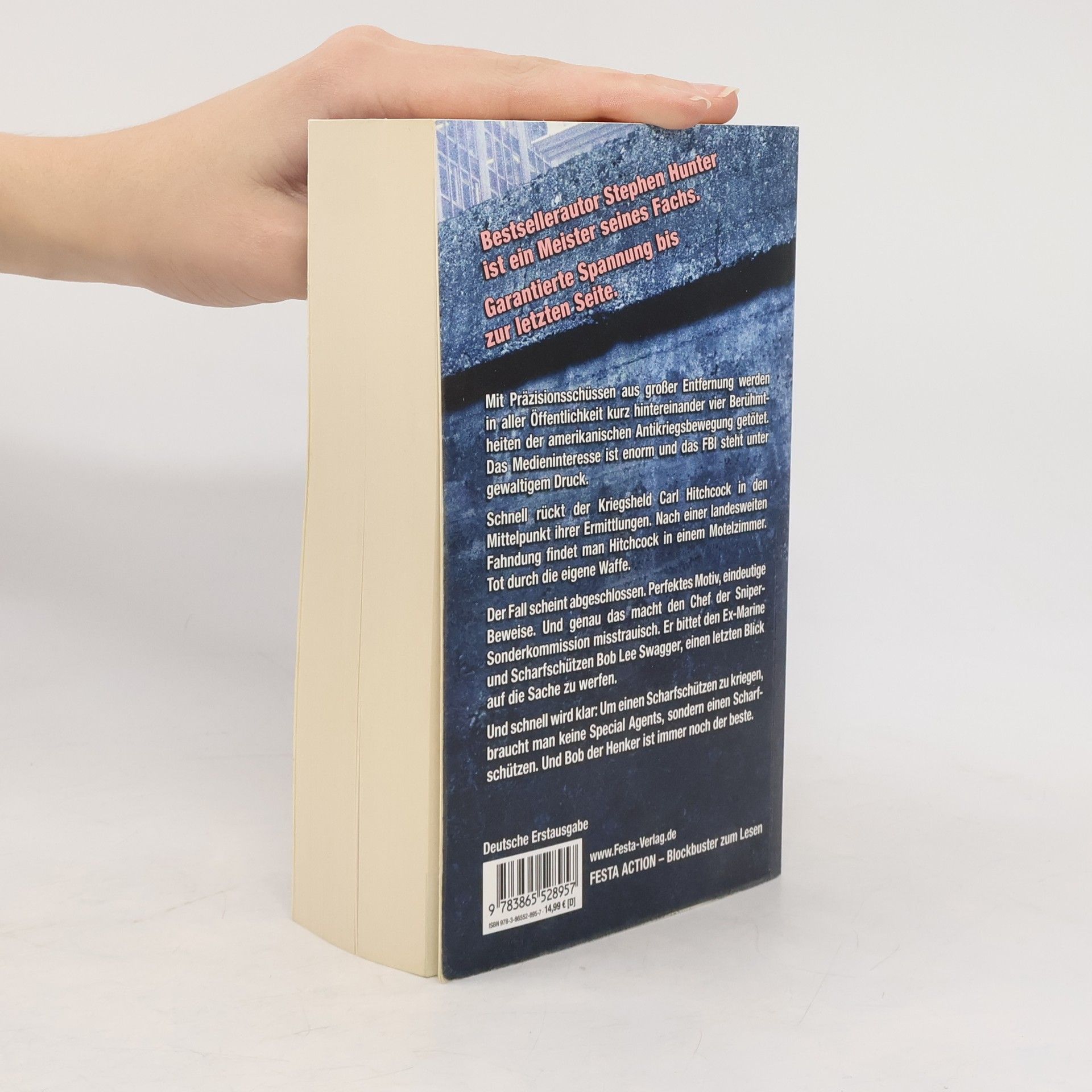 Mit Präzisionsschüssen aus großer Entfernung werden in aller Öffentlichkeit kurz hintereinander vier Berühmtheiten der amerikanischen Antikriegsbewegung getötet. Das Medieninteresse ist enorm und das FBI steht unter gewaltigem Druck. Schnell rückt der Kriegsheld Carl Hitchcock in den Mittelpunkt ihrer Ermittlungen. Nach einer landesweiten Fahndung findet man Hitchcock in einem Motelzimmer. Tot durch die eigene Waffe. Der Fall scheint abgeschlossen. Perfektes Motiv, eindeutige Beweise. Und genau das macht den Chef der Sniper-Sonderkommission misstrauisch. Er bittet den Ex-Marine und Scharfschützen Bob Lee Swagger, einen letzten Blick auf die Sache zu werfen. Und schnell wird klar: Um einen Scharfschützen zu kriegen, braucht man keine Special Agents, sondern einen Scharfschützen. Und Bob der Henker ist immer noch der beste. Bestsellerautor Stephen Hunter ist ein Meister seines Fachs. Garantierte Spannung bis zur letzten Seite! Stephen King: »Ich liebe die Romane von Stephen Hunter.« Nelson DeMille: »Stephen Hunter ist eine Klasse für sich«. Phillip Margolin: »Einer der besten Thriller-Autoren der Welt.« New York Daily News: »Nur wenige moderne Autoren können Hunter in Sachen Vorstellungskraft das Wasser reichen und dem Leser einen derartigen Adrenalinkick verpassen.« Publishers Weekly: »Einer der talentiertesten im Thrillergeschäft.«