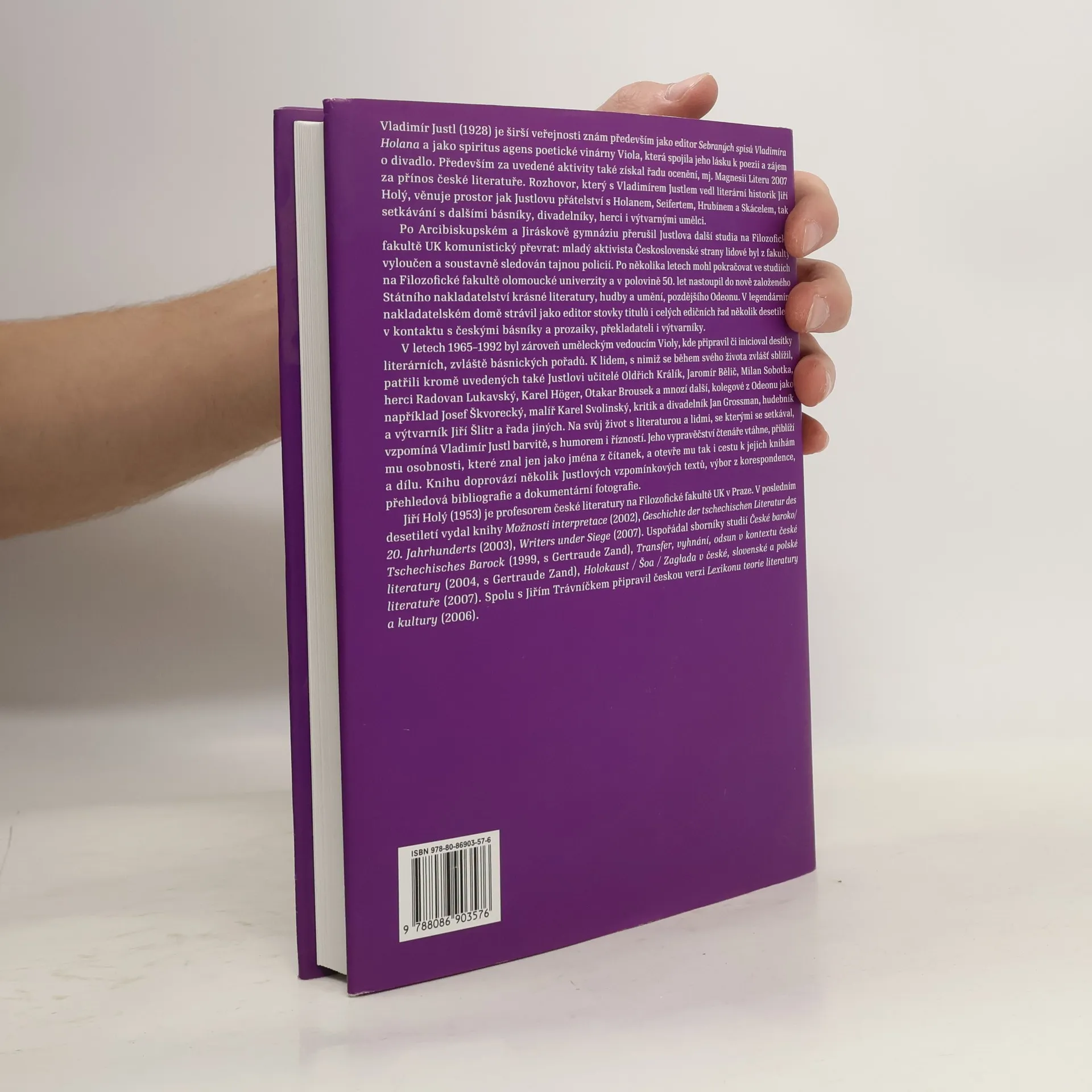 Autobiografie literárního teoretika a editora Vladimíra Justla vedená formou dialogu. Autobiografická výpověď známého českého editora, literárního historika a spoluzakladatele pražské Violy Vladimíra Justla, jak ji zaznamenal Jiří Holý. V živém a strhujícím vyprávění je zachycena poválečná atmosféra v pražských literárních kruzích a nakladatelstvích. Osobnosti, s nimiž se Justl během svého života poznal, přibližuje s místy až sarkastickým tónem. Důvěrná znalost prostředí mu dovoluje uvádět na pravou míru některé literární mýty a posuzovat je se zjevnou snahou po objektivitě. V jeho výpovědi ožívají takové osobnosti jako Vladimír Holan, Jaroslav Seifert a další. Text doprovází černobílá fotografická příloha.