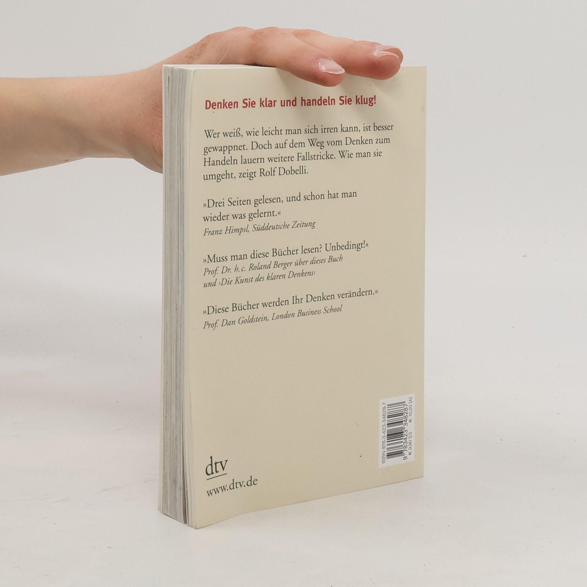 Denken Sie klar und handeln Sie klug! Wer Rolf Dobellis gescheite Texte über unsere häufigsten Denkfehler gelesen hat, weiß mehr, doch ist er noch lange nicht aus dem Schneider. Denn auf dem Weg vom Denken zum Handeln lauern weitere Fallstricke. Glücklicherweise kann man die umgehen – wenn man weiß, wie. Dazu gibt uns Rolf Dobelli das nötige Rüstzeug. Schlagen Sie nicht jeden Irrweg ein, nur weil andere ihn gehen. Lernen Sie aus den Fehlern, die andere freundlicherweise für Sie machen. Denken Sie klar und handeln Sie klug!