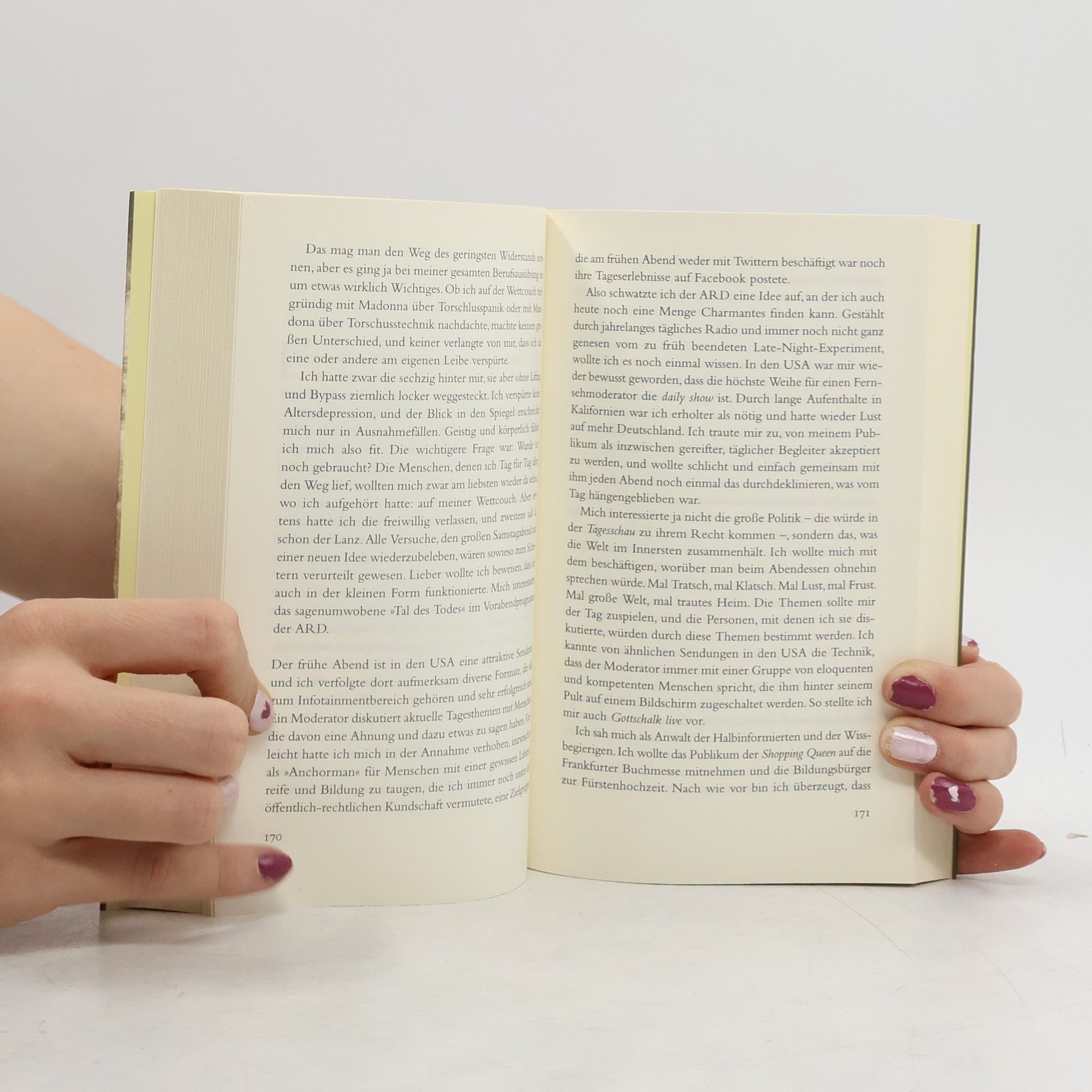 »Als ich beim Radio angefangen habe, gab es ›Ansager‹, ›Sprecher‹ und ›Conferenciers‹. Die einen haben gelesen, was ihnen andere vorgeschrieben hatten, die anderen haben sich vorher aufgeschrieben, was sie sagen wollten. Ich hab einfach drauflosgeredet. Und das mache ich auch in diesem Buch.« Thomas Gottschalk erzählt von seiner Kindheit und Jugend im fränkischen Kulmbach, von seinem Aufstieg zum Medienstar und seinen Begegnungen mit den Großen dieser Welt, von Rückzugsorten und Glücksvorstellungen, von Familie und Freunden, tragischen und glanzvollen Momenten. Nachdenklich, selbstironisch, lebensklug und ehrlich!