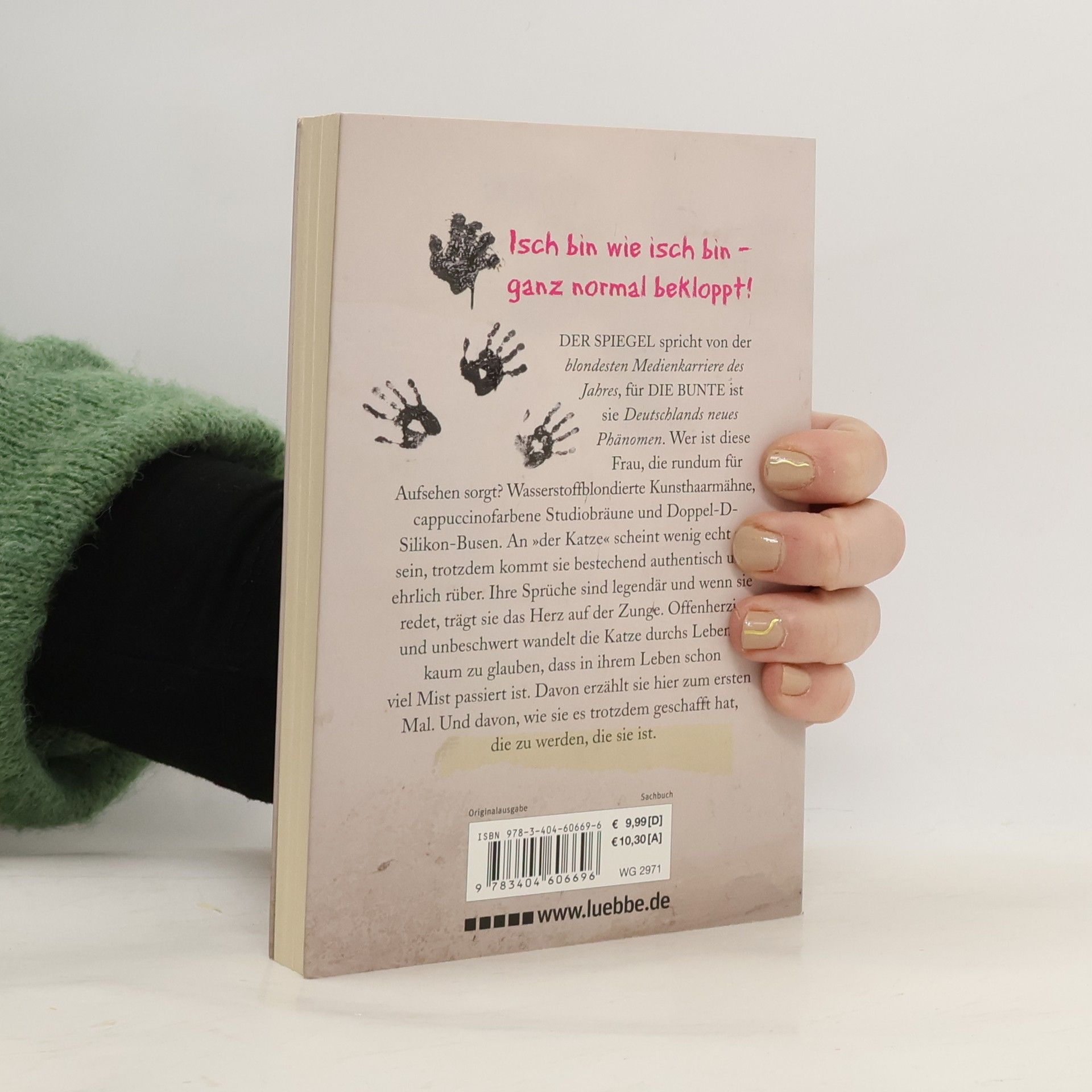 Der Spiegel spricht von der „blondesten Medienkarriere des Jahres“, für die Bunte ist sie Deutschlands neues Phänomen. Wer ist diese Frau, die rundum für Aufsehen sorgt? Wasserstoffblondierte Kunsthaarmähne, cappuccinofarbene Studiobräune und Doppel-D-Silikon-Busen. An „der Katze“ scheint wenig echt zu sein, trotzdem kommt sie bestechend authentisch und ehrlich rüber. Ihre Sprüche sind legendär und wenn sie redet, trägt sie das Herz auf der Zunge. Offenherzig und unbeschwert wandelt die Katze durchs Leben – kaum zu glauben, dass in ihrem Leben schon viel Mist passiert ist. Davon erzählt sie hier zum ersten Mal. Und davon, wie sie es trotzdem geschafft hat, die zu werden, die sie ist.