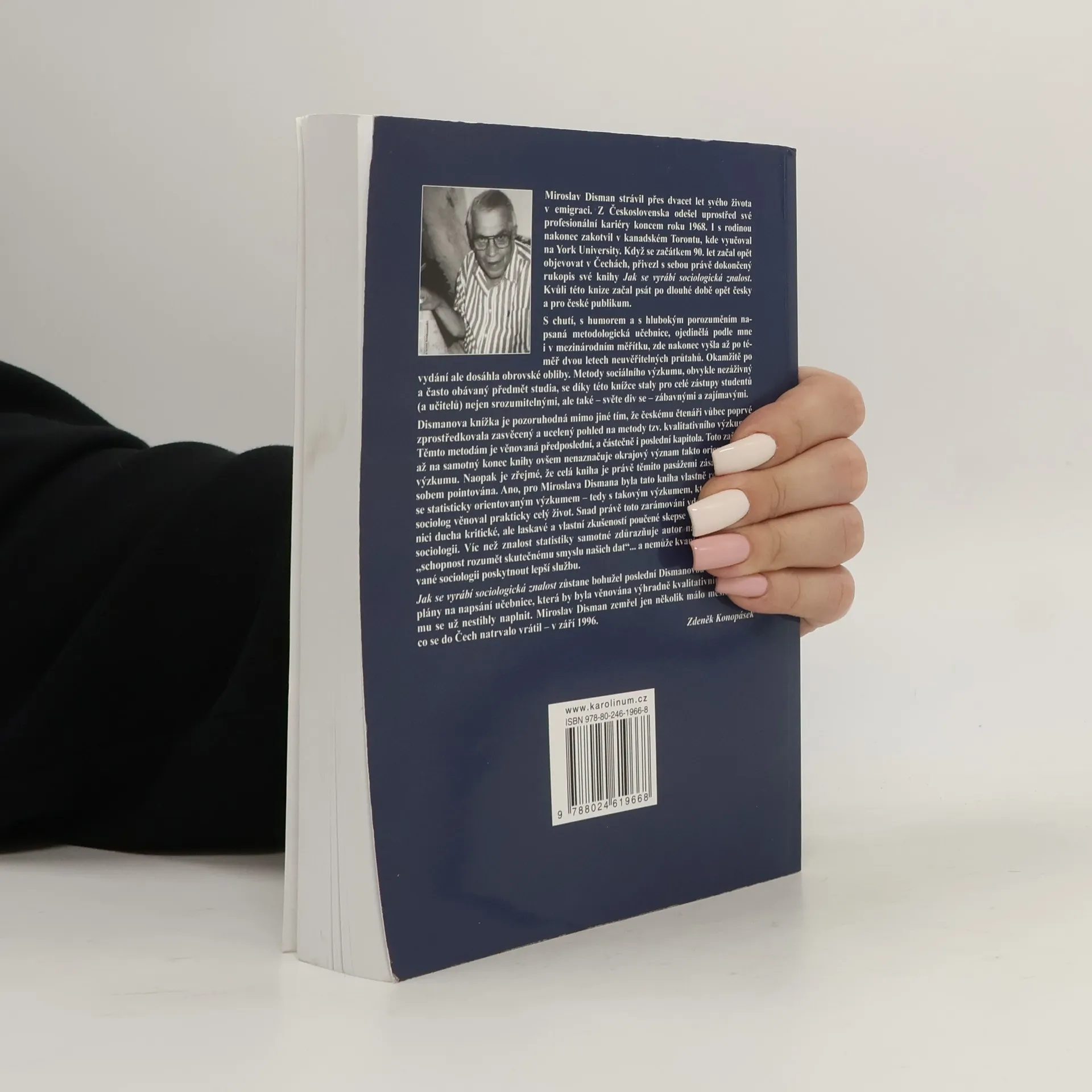 "Především si řekněme, o čem tahle knížka není. Nechce nahradit standardní učebnici sociologického výzkumu, nenabízí úplnou zbrojnici metod a technik a už vůbec nechce naučit čtenáře statistice. Její cíl je v tomto smyslu daleko skromnější: porozumění logice výzkumu a porozumění smyslu statistických operací." Tolik autor ve svém úvodním slově. Obvykle nezáživné metody sociologie Disman představuje s humorem a nadhledem a více než o znalost statistiky samotné mu jde o schopnost porozumět "skutečnému smyslu našich dat". 4. vydání úspěšné učebnice.