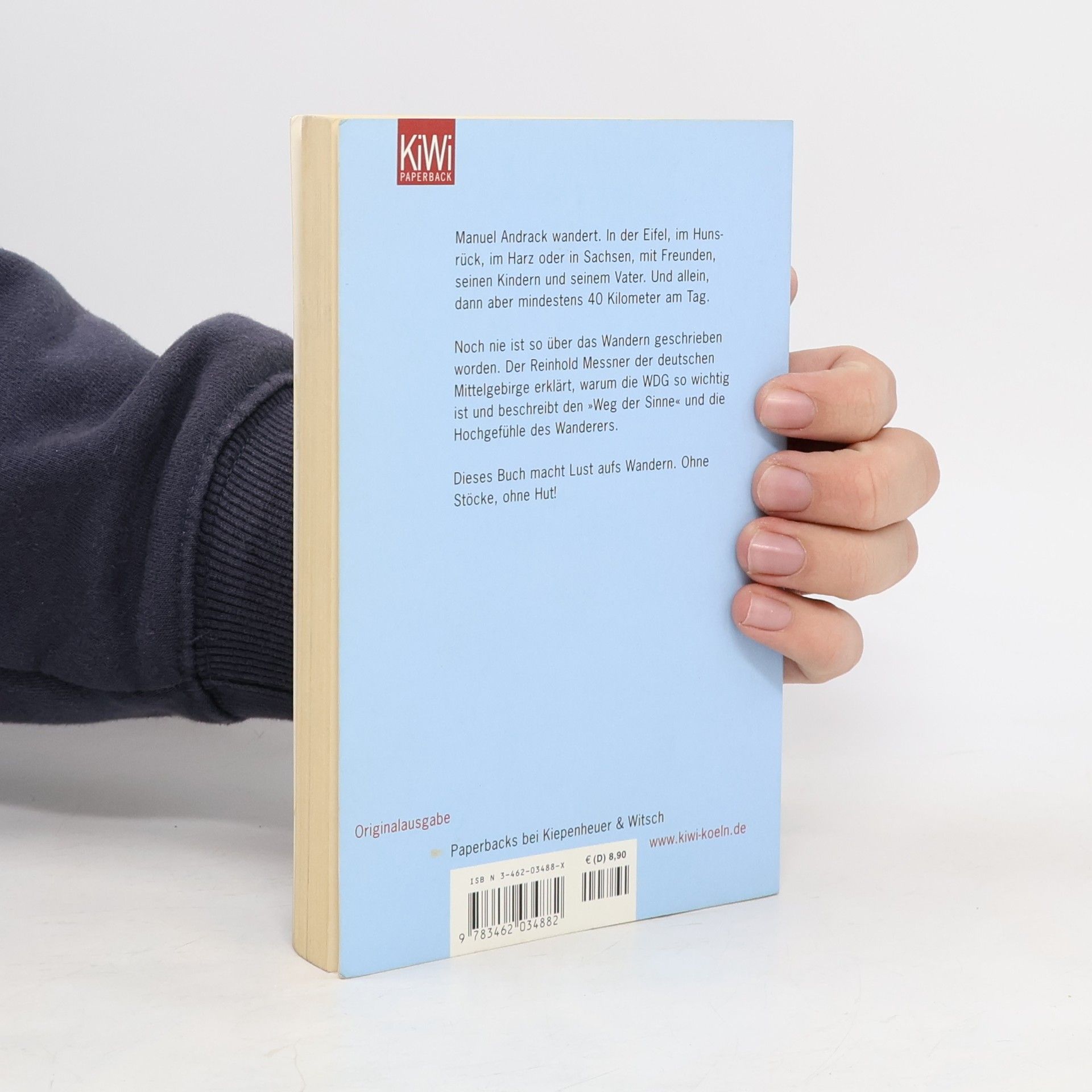 Warum wird Manuel Andrack in Böhmen beim Wandern von einem Fährmann übergesetzt und was zum Teufel hat es mit der WDG (Wanderdurchschnittsgeschwindigkeit) auf sich? Darf man Mountainbiker im Wald grüßen und sind Wanderstöcke peinlich? Kommt nach der New Economy und der Neuen Mitte nun das Neue Wandern? Wanderer brauchen Glück. Denn häufig genug ziehen sich manche der ausgewiesenen Wege an viel befahrenen Bundesstraßen entlang. Hat man dann endlich den rettenden Forstweg erreicht, wird man von riesigen Holztransportern überholt, so dass nur noch der Sprung in den nächsten Graben Schlimmeres verhindert. Was aber immer noch besser ist, als Auge in Auge mit einem aggressiven Riesenhund ohne Herrchen mitten im Wald zu stehen. Manuel Andrack kennt das alles. Seit fast zehn Jahren wandert er in der Eifel, dem Harz oder durch die Sächsische und Böhmische Schweiz. Von seinen persönlichen Lieblingswanderwegen erzählt er in 'Du musst wandern'. Dabei wandert er mit Freunden, seinen Kindern und seinen Eltern, aber am liebsten wandert er allein und lange. Oft ist Manuel Andrack den ganzen Tag unterwegs, geht bis zu 40 Kilometer. Er wandert nach dem Abstieg des 1. FC Köln (mit jedem Schritt wurde der Schmerz weniger) und findet Trost beim großen Wanderer Johann Wolfgang von Goethe: 'Was ich nicht erlernt habe, das habe ich erwandert.'