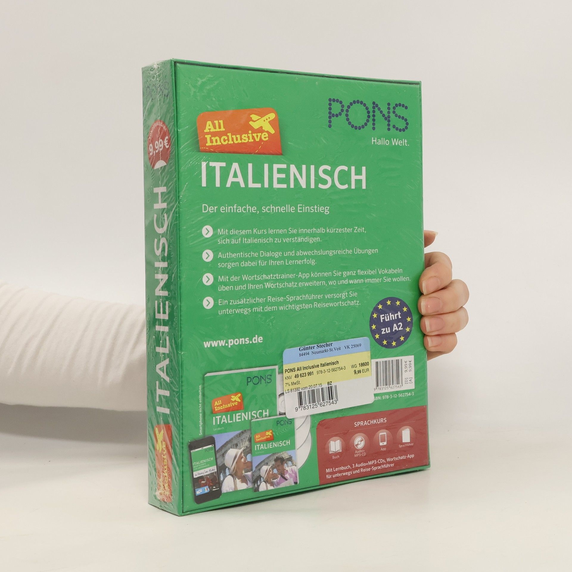 „Der einfache, schnelle Einstieg - Mit diesem Kurs lernen Sie innerhalb kürzester Zeit, sich auf Italienisch zu verständigen. - Authentische Dialoge und abwechslungsreiche Übungen sorgen dabei für Ihren Lernerfolg. - Mit der Wortschatztrainer-App können Sie ganz ? exibel Vokabeln üben und Ihren Wortschatz erweitern, wo und wann immer Sie wollen. - Ein zusätzlicher Reise-Sprachführer versorgt Sie unterwegs mit dem wichtigsten Reisewortschatz. Inhalt: Buch, 3 Audio+MP3-CDs, Wortschatztrainer-App und Reise-Sprachführer. Für Anfänger und Last-Minute-Lerner. Führt zu Niveau A1 nach dem Europäischem Referenzrahmen für Sprachkenntnisse.“