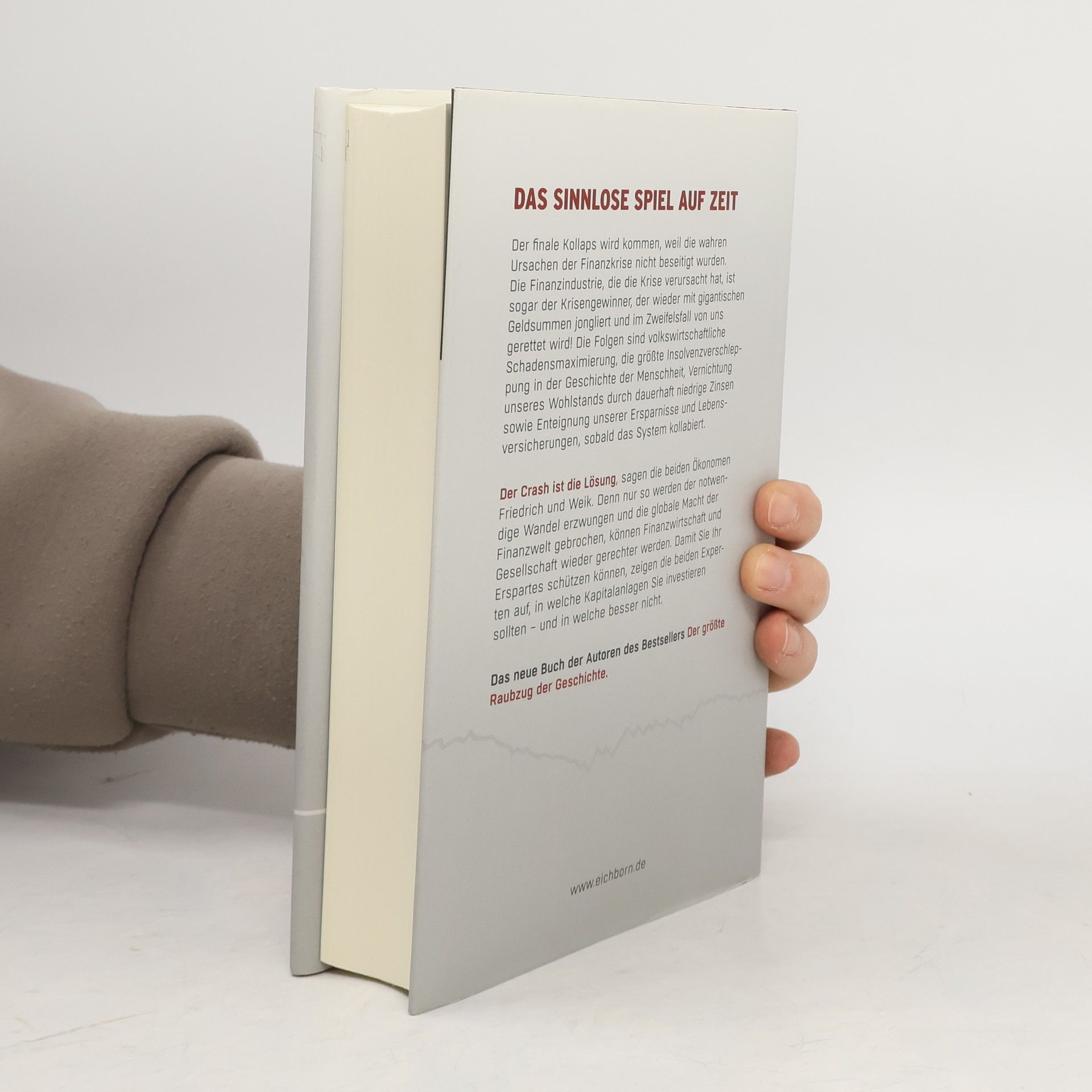 Es stellt sich längst nicht mehr die Frage, ob der Crash kommen wird - sondern lediglich wann. Denn alle Maßnahmen zur Banken-, Länder- und Eurorettung laufen auf volkswirtschaftliche Schadensmaximierung und den Staatsbankrott Deutschlands hinaus. Die Enteignung der Bürger für diesen Fall wird längst vorbereitet. Staatsanleihen, Renten- und Lebensversicherungen, Konten - das sind die großen Verlierer im Falle eines Crashs, der lieber früher als später kommen soll, denn nur dann sind Politik und Wirtschaft bereit, radikal etwas zu verändern. Gewinner und Verlierer des großen CrashsIn ihrem Sachbuch beschreiben die Wirtschaftsexperten Matthias Weik und Marc Friedrich die globalen Krisenmotoren und auch diejenigen, die von der Krise profitieren. Denn die Verursacher der Krise sind auch gleichzeitig die Gewinner. Doch die Autoren spenden ihren Lesern auch Hoffnung: Die Finanzstrategen erklären für jeden verständlich, wie man sein Geld rechtzeitig in Sachwerte umschichtet, um sein Erspartes nicht zu verlieren.
