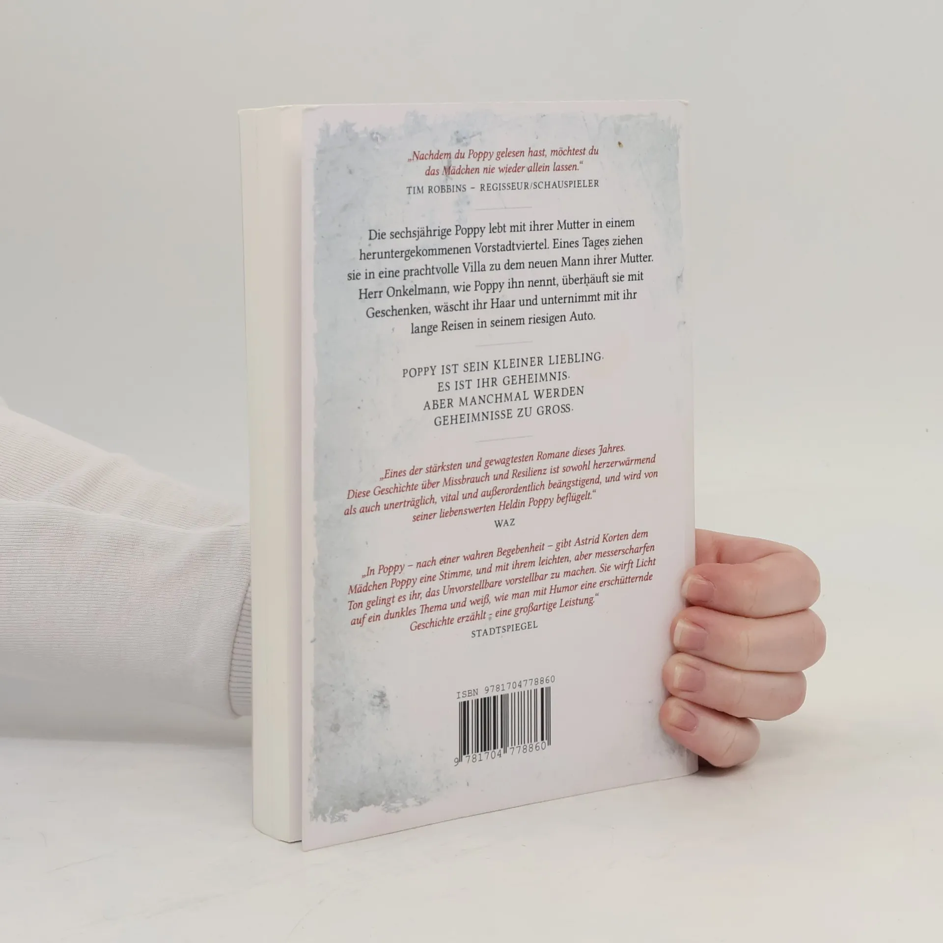 „Nachdem du Poppy gelesen hast, möchtest du das Mädchen nie wieder allein lassen.“ Tim Roberts – Regisseur/Schauspieler. Die sechsjährige Poppy lebt mit ihrer Mutter in einem heruntergekommenen Vorstadtviertel. Eines Tages ziehen sie in eine prächtige Villa zu dem neuen Mann ihrer Mutter, der Poppy jeden Wunsch erfüllt und sie mit Geschenken überhäuft. Poppys Mutter ist glücklich, doch es gibt eine dunkle Seite. Erste Stimmen: „Eines der stärksten und gewagtesten Romane dieses Jahres, der auf wahren Begebenheiten beruht. Diese Geschichte über Psychospiele, Missbrauch und Resilienz ist sowohl herzerwärmend als auch unerträglich.“ WAZ. Astrid Korten gibt Poppy eine Stimme und beleuchtet ein dunkles Thema mit Humor und einem messerscharfen Ton. Die Geschichte berührt und macht wütend, während brillante Situationskomik nie im Widerspruch zu den erschütternden Erlebnissen steht. Korten bringt Humor, Ironie und das Leid des Mädchens auf herzerwärmende und unerträgliche Weise zum Ausdruck. Die Vielfalt der Gefühle, die Poppys Geschichte weckt, ist schwer in Worte zu fassen. Hochachtung gebührt Astrid Korten und der heute erwachsenen Poppy für ihren Mut, diese wahre Geschichte zu erzählen. Ich habe beim Lesen gelacht und geweint. Christine Hochberger, Buchreif.