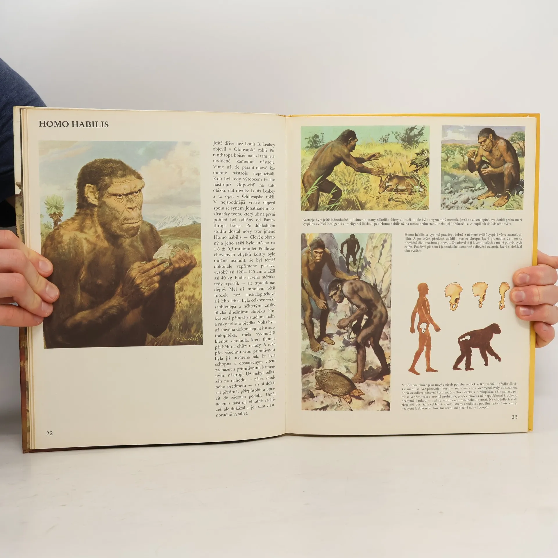 Obrazová publikace přípustnou formou seznamuje s nejstarším a nejdelším obdobím dějin lidstva, během něhož se předek člověka vyvíjel do své dnešní podoby. Vypráví o charakteristických rysech jednotlivých vývojových typů člověka, o způsobu jeho života, o magických loveckých kultech,o nejstarších výtvarných památkách, o prvních obydlích pravěkých lidí apod.