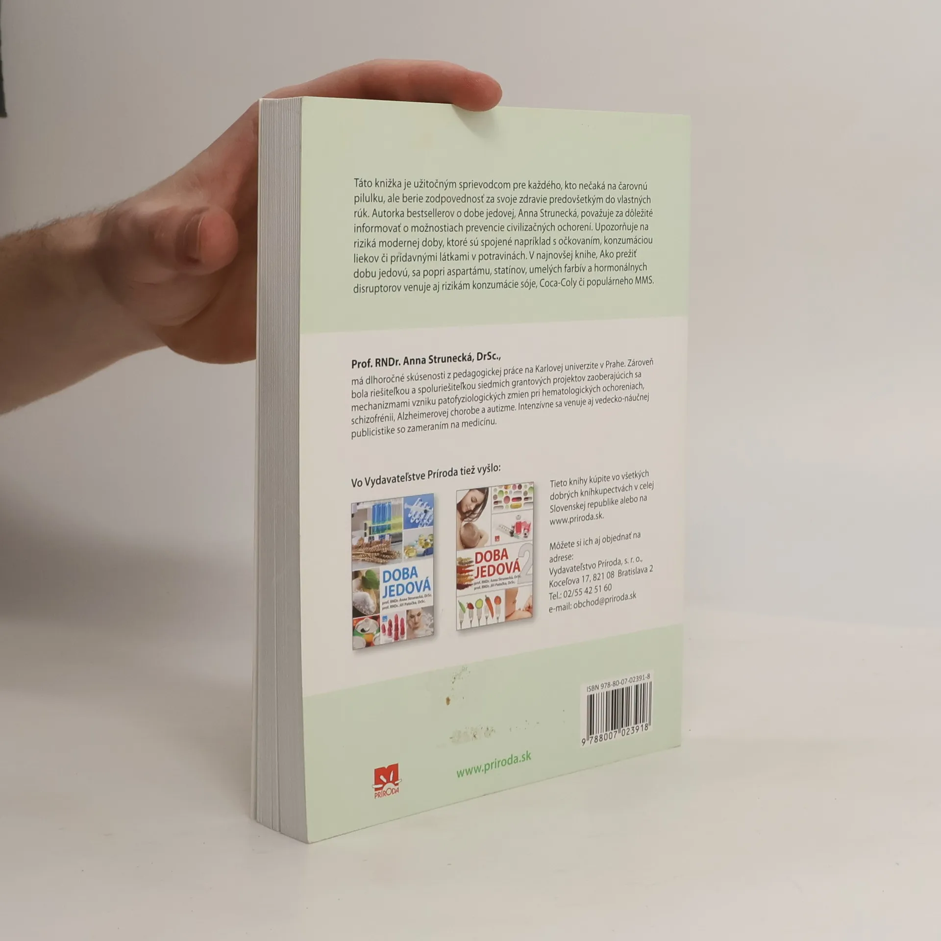 Táto knižka je užitočným sprievodcom pre každého, kto nečaká na čarovnú pilulku, ale berie zodpovednosť za svoje zdravie predovšetkým do vlastných rúk. Autorka bestsellerov o dobe jedovej, prof. RNDr. Anna Strunecká, DrSc., považuje za dôležité informovať o možnostiach prevencie civilizačných ochorení a upozorňuje na riziká modernej doby, ktoré sú spojené napríklad s očkovaním, konzumáciou liekov či prídavných látok do potravín. Venuje sa ale aj úskaliam niektorých alternatívnych metód. V najnovšej knihe, Ako prežiť dobu jedovú, sa popri aspartámu, statínov, umelých farbív a hormonálnych disruptorov venuje aj rizikám konzumácia sóje, Coca - Coly či populárneho MMS. "Píšem iba o tom, čomu rozumiem a pre čo nachádzam podklady v odbornej literatúre. Nikoho nenútim, aby mi veril a svoje názory šírim iba tam, kde ich ľudia chcú počúvať," hovorí autorka populárnych publikácií.