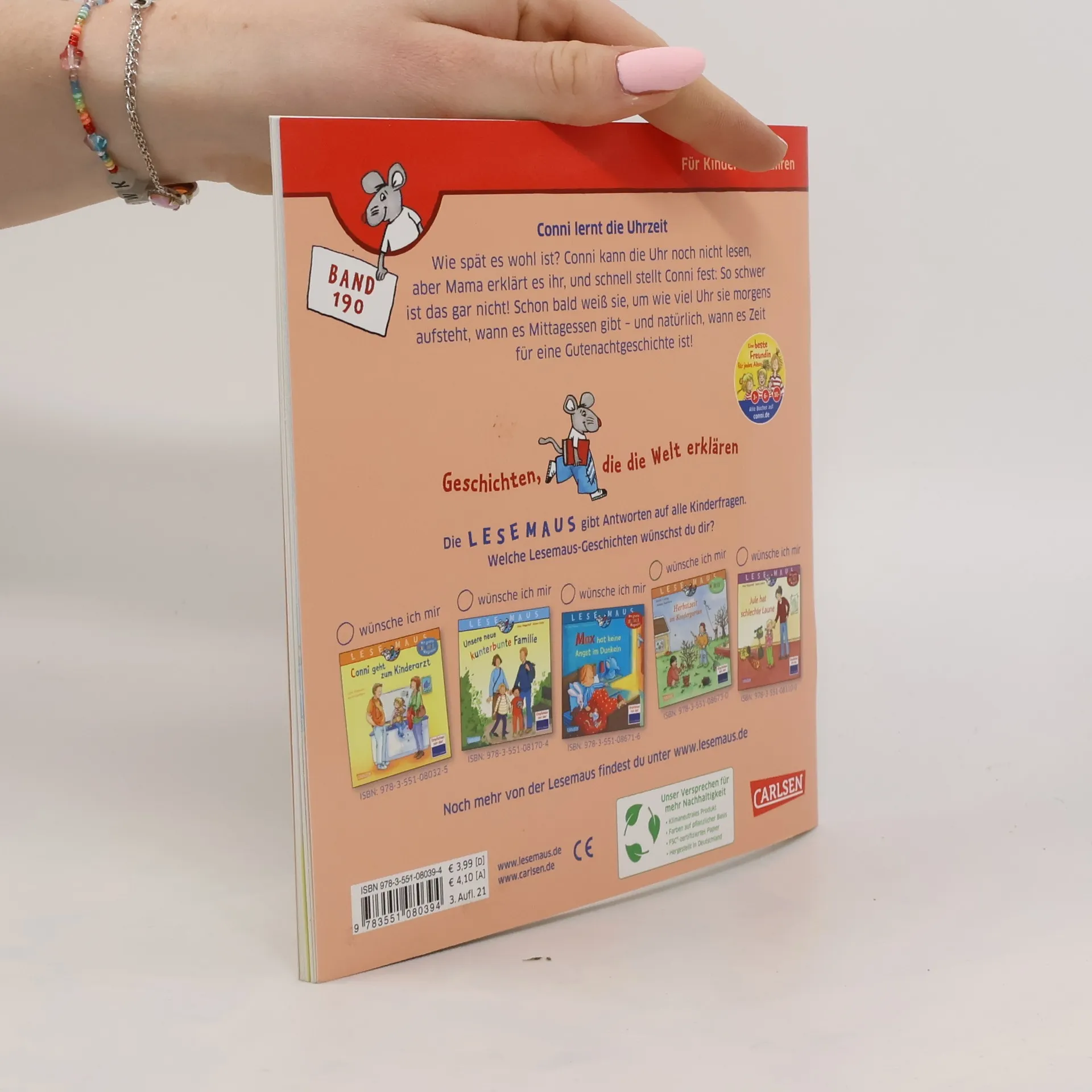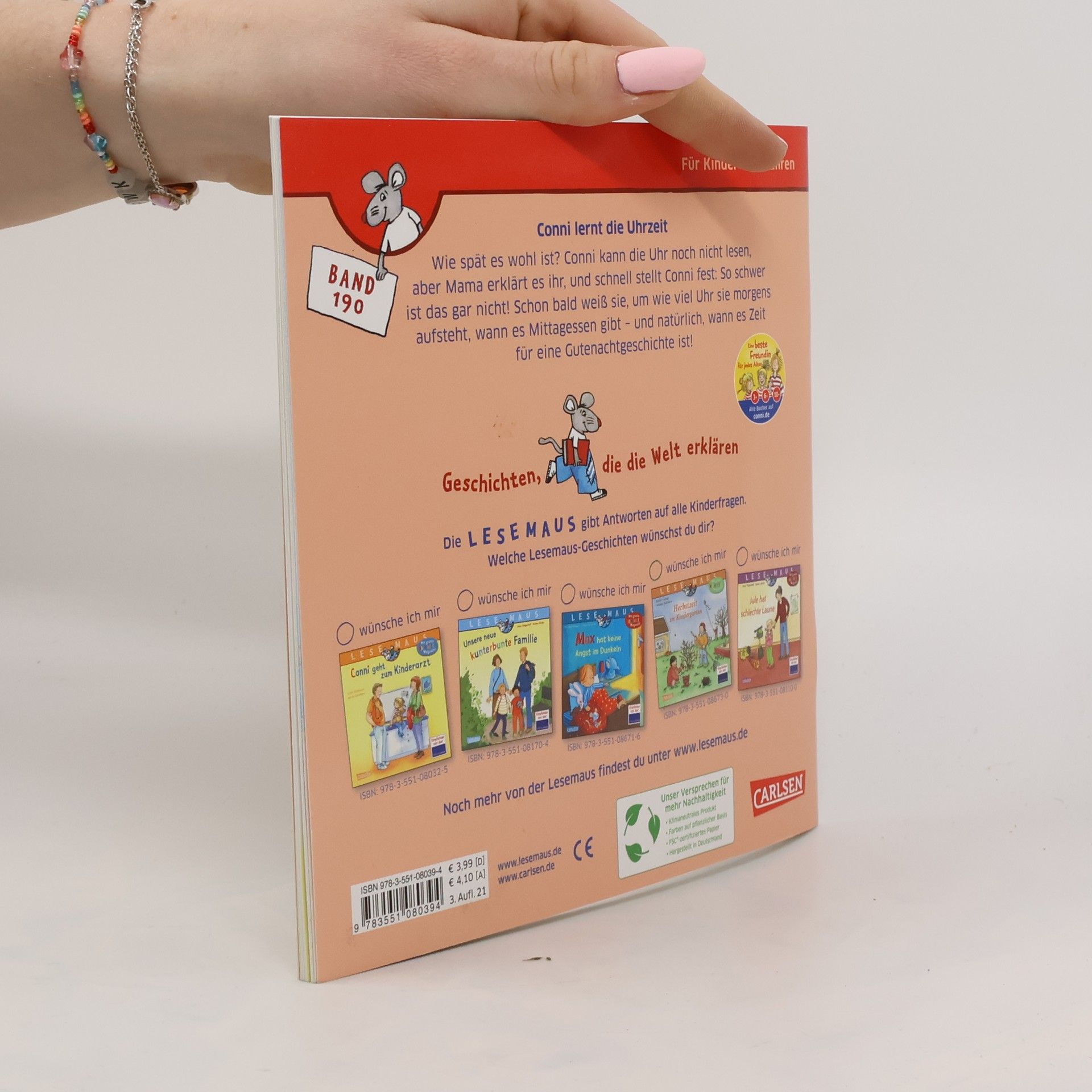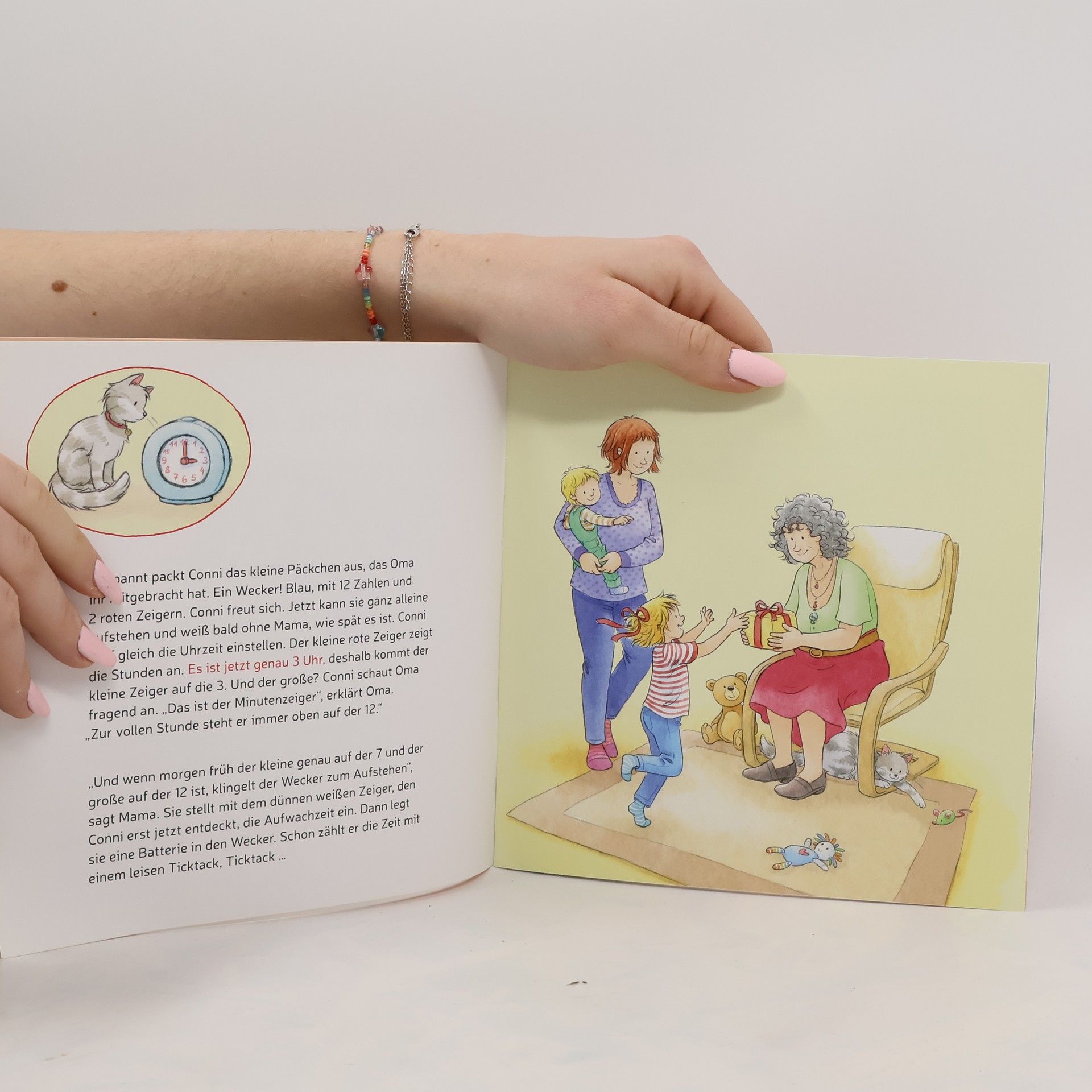 Conni möchte wissen, wie spät es ist. Aber sie kann die Uhr noch nicht lesen. Zum Glück hat Mama versprochen, es ihr zu erklären, und schnell stellt Conni fest: So schwer ist das gar nicht! Schon bald weiß sie, an welchem Zeiger man die Stunden abliest und an welchem die Minuten, um wie viel Uhr sie morgens aufsteht, wann es Mittagessen gibt – und natürlich, wann es Zeit für eine Gutenachtgeschichte ist. Eine tolle Conni-Vorlesegeschichte aus dem Kinderalltag, mit der sich spielend leicht die Uhrzeit lernen lässt!