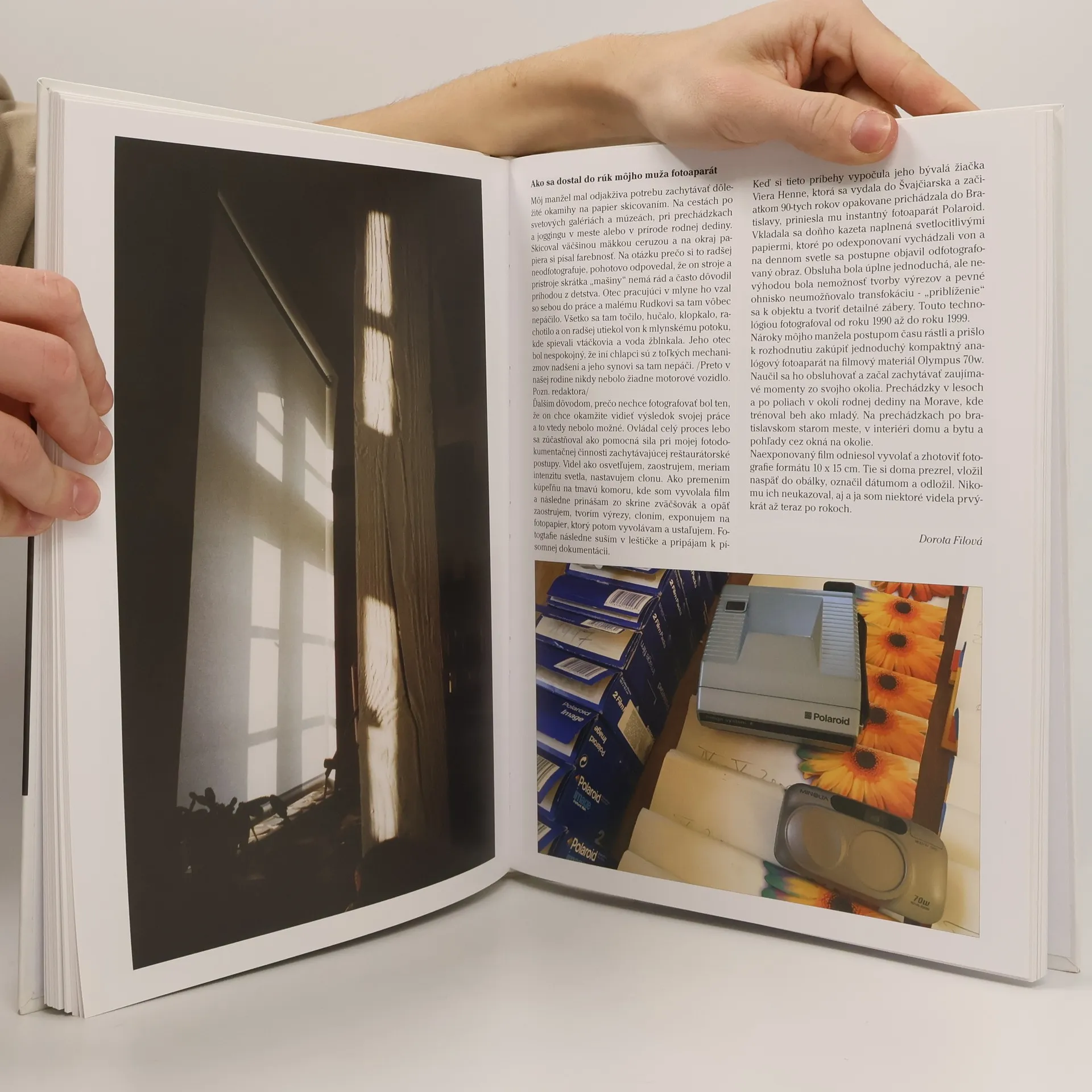 Kniha obsahuje veľkú väčšinu fotografií zhotovených maliarom a pedagógom Rudolfom Filom. Publikácia je rozdelená do štyroch častí. V prvej su polaroidné instantné zábery, v druhej už analógové fotografie na filmový materiál, v tretej fotografie zhotovené aj inými autormi so zásahmi RF a štvrtá časť je fotoživotopis autora. Pozorovateľ môže takto získať komplexný pohľad na fotografický život Rudolfa Filu.