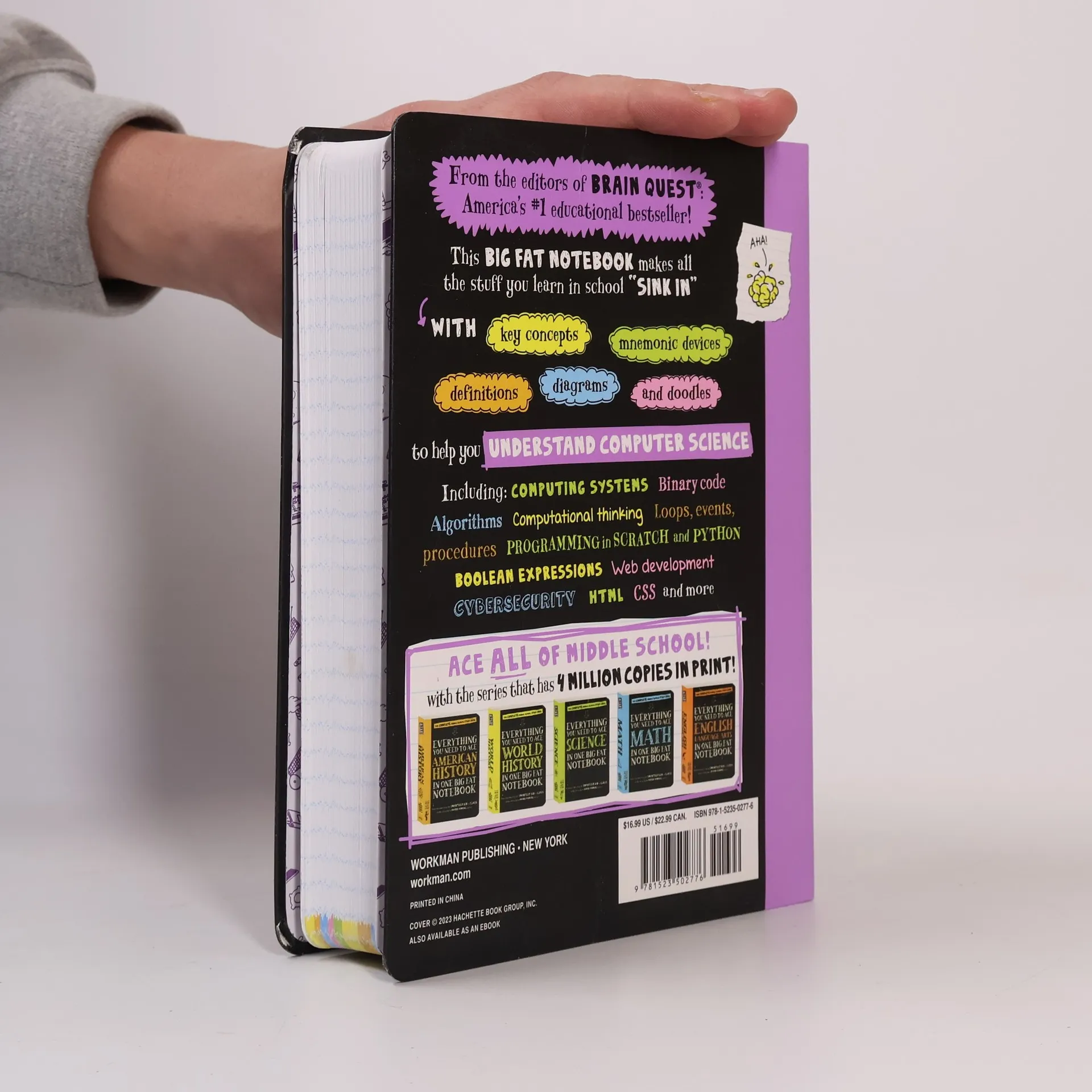 From the editors of Brain Quest, America’s #1 educational bestseller! This Big Fat Notebook makes it all “sink in” with key concepts, mnemonic devices, definitions, diagrams, and doodles to help you understand computer science. Including: Computing systems Binary code Algorithms Computational thinking Loops, events, and procedures Programming in Scratch and Python Boolean Expressions Web development Cybersecurity HTML CSS …and more! The Big Fat Notebook series is built on a simple and irresistible conceit—borrowing the notes from the smartest kid in class. Each book in the series meets Common Core State Standards, Next Generation Science Standards, and state history standards, and are vetted by National and State Teacher of the Year Award–winning teachers. They make learning fun and are the perfect next step for every kid who grew up on Brain Quest.
