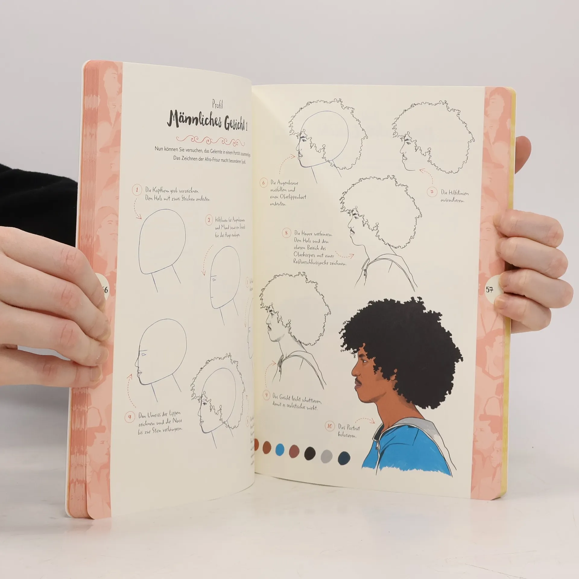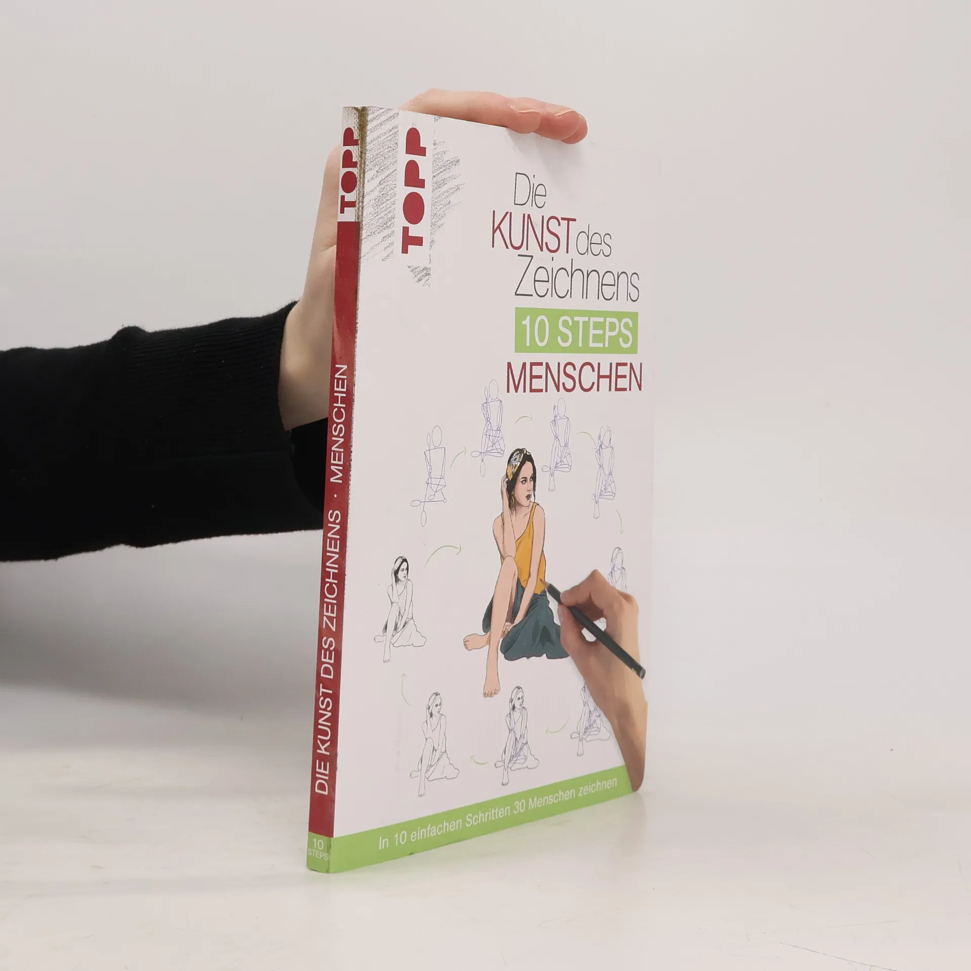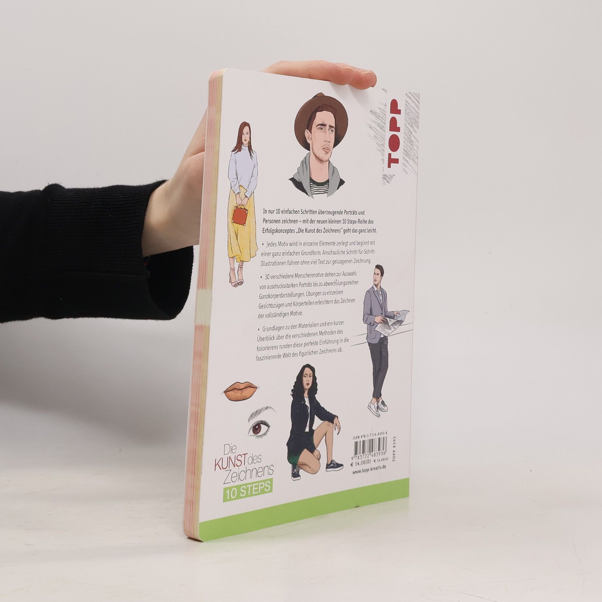 In nur 10 einfachen Schritten überzeugende Porträts und Personen zeichnen – mit der neuen kleinen 10 Steps-Reihe des Erfolgskonzeptes „Die Kunst des Zeichnens“ geht das ganz leicht. Jedes Motiv wird in einzelne Elemente zerlegt und beginnt mit einer ganz einfachen Grundform. Anschauliche Schritt-für-Schritt-Illustrationen führen ohne viel Text zur gelungenen Zeichnung. 30 verschiedene Menschenmotive stehen zur Auswahl: von ausdrucksstarken Porträts bis zu abwechslungsreichen Ganzkörperdarstellungen. Übungen zu einzelnen Gesichtszügen und Körperteilen erleichtert das Zeichnen der vollständigen Motive. Grundlagen zu den Materialien und ein kurzer Überblick über die verschiedenen Methoden des Kolorierens runden diese perfekte Einführung in die faszinierende Welt des figürlichen Zeichnens ab.