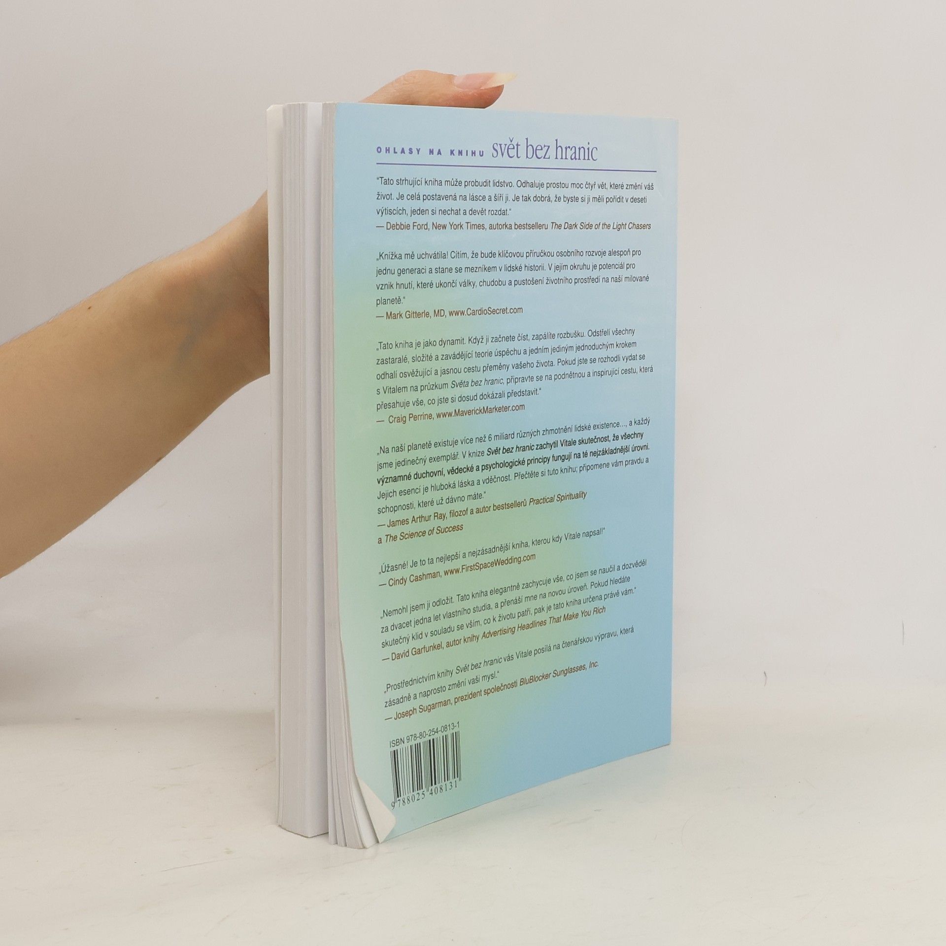 Joe Vitale, autor světového bestselleru Síla přitažlivosti, ve své další knize Svět bez hranic vypráví neobyčejný příběh Dr. Ihaleakala Hew Lena, terapeuta, který vyléčil celé oddělení mentálně postižených recidivistů, aniž by kteréhokoliv z nich viděl. Kniha popisuje jeho metodu. Popisuje skutečnou příčinu všeho, co se vám přihodí a jak "očistit" negativitu, abyste se mohli znovu spojit s Božskou podstatou. "Dr. Hew Len mi vysvětlil, že přijmout absolutní zodpovědnost za svůj život, tedy za vše, co se v mém životě objeví, znamená uznat, že vše kolem mne je mým vlastním výtvorem." Vím, že to je obtížné to pochopit, natož to přijmout nebo podle toho opravdu žít. Vinit druhé nebo své okolí je mnohem snažší, než přijmout naprostou zodpovědnost. Během rozhovoru s Hew Lenem jsem začal chápat, že léčení z jeho pohledu a v duchu ho'oponopono znamená milovat sám sebe. Chcete-li zlepšit svůj život, musíte jej vyléčit. Chcete-li někoho uzdravit, a může jít klidně o mentálně chorého vězně, musíte nejprve vyléčit sebe." Joe Vitale Kniha Svět bez hranic je jednou z nejúchvatnějších knih, která kdy vůbec byla napsána.